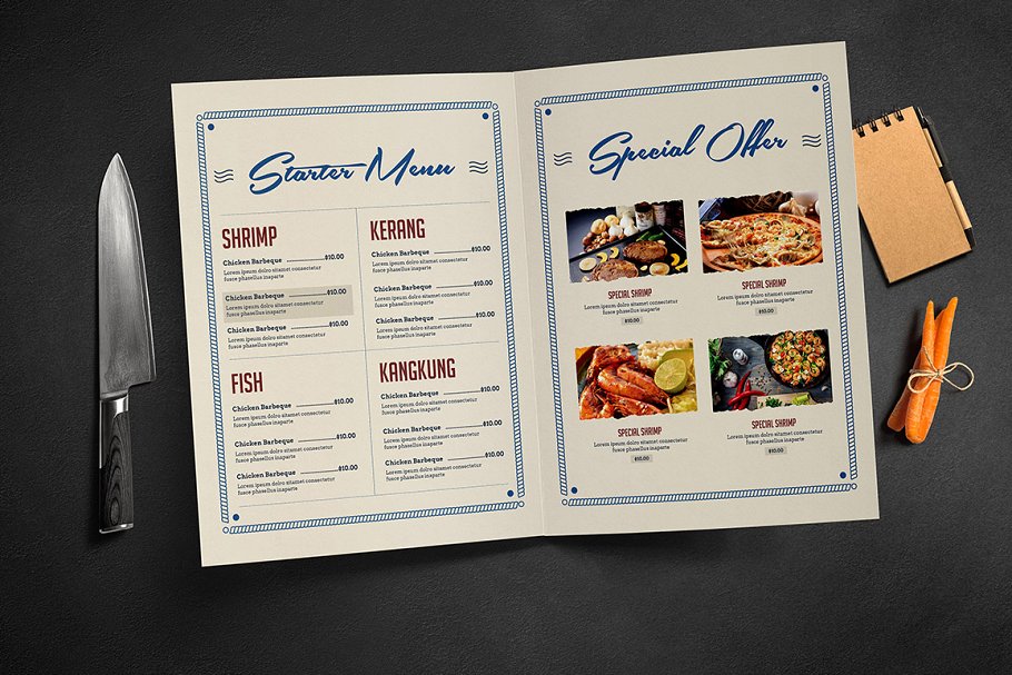 乡村双折页菜单 这个菜单附带6页的Photoshop CC文件,您可以轻松地更改文本、颜色和图像。 声明:所有作品均是用户自行上传分享,仅供网友学习交流,请勿作它用。若您的权益被侵害,请及时发邮件联系我们(v918pic@foxmail.com)。在您发送邮件后,工作人员会尽快处理,由于涉及内容不同,所需周期也不同,请您耐心等待。简约菜单菜单菜单模板 C-Crystal 海报 链接