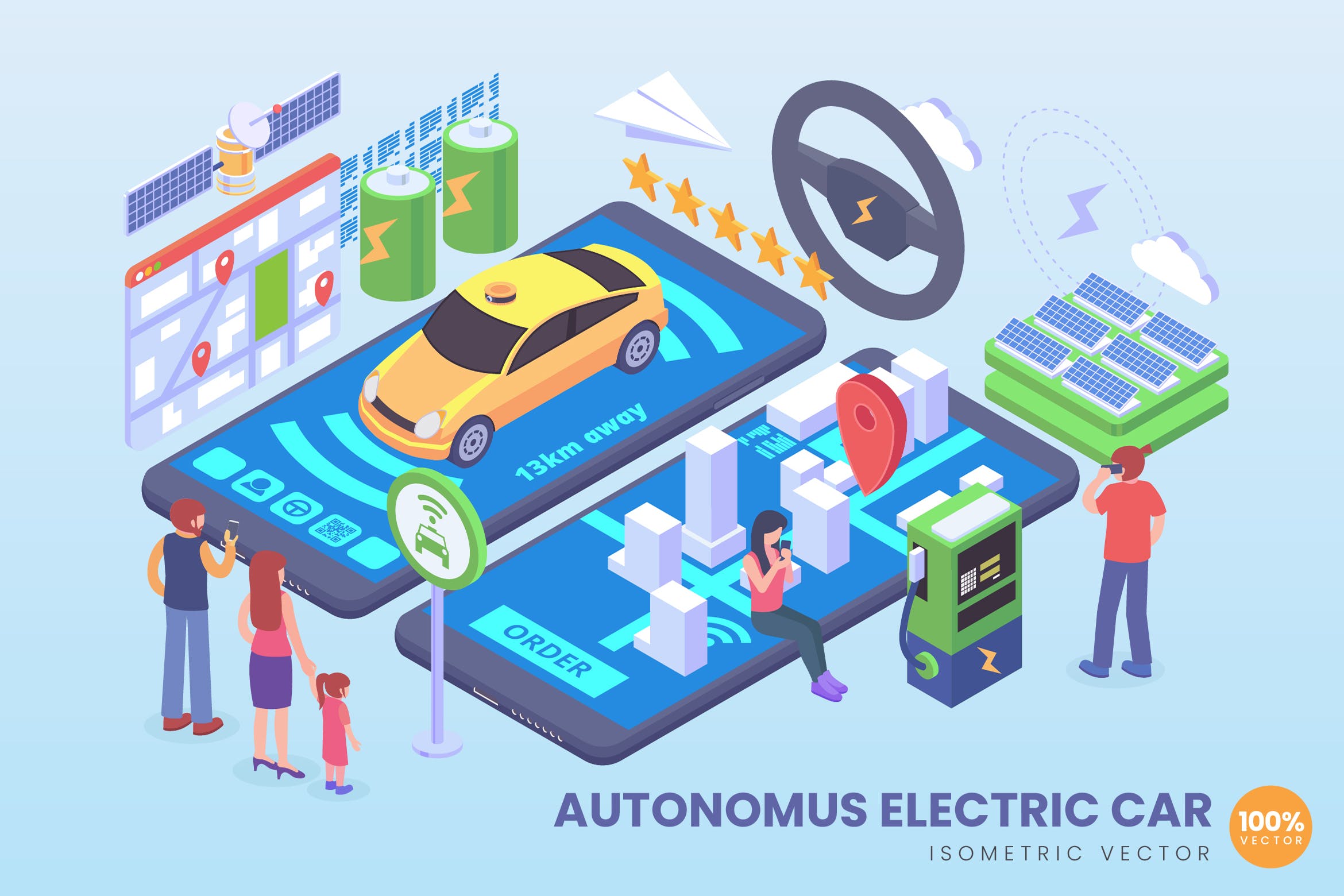 等距向量资产始终在视觉上具有吸引力。无论是用于Web图形,着陆页,横幅,图标,地图,信息图形,社交媒体,书籍以及其他相关插图用途,等距对象始终非常适合您的项目目标。在本系列中,我们精心制作并向您展示了自主电动汽车等距向量概念。这个华丽的概念是100%向量,您可以将向量AI文件调整为任意大小,而不会降低其质量。我们希望您能喜欢 :)