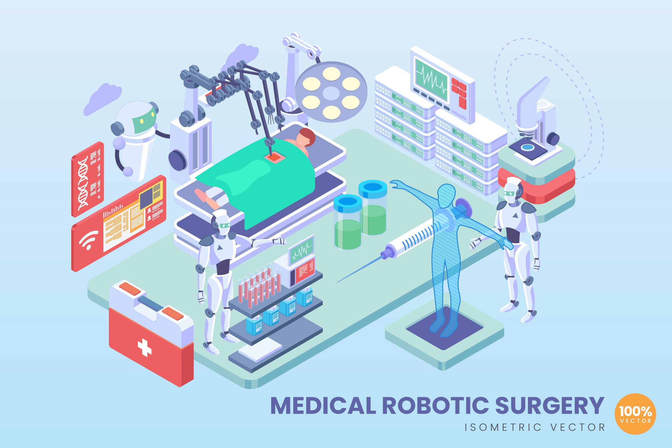 等距向量资产始终在视觉上具有吸引力。无论是用于Web图形,着陆页,横幅,图标,地图,信息图形,社交媒体,书籍以及其他相关插图用途,等距对象始终非常适合您的项目目标。在本系列中,我们精心设计并向您介绍了医疗机器人手术等距向量概念。这个华丽的概念是100%向量,您可以将向量AI文件调整为任意大小,而不会降低其质量。我们希望您能喜欢 :)
