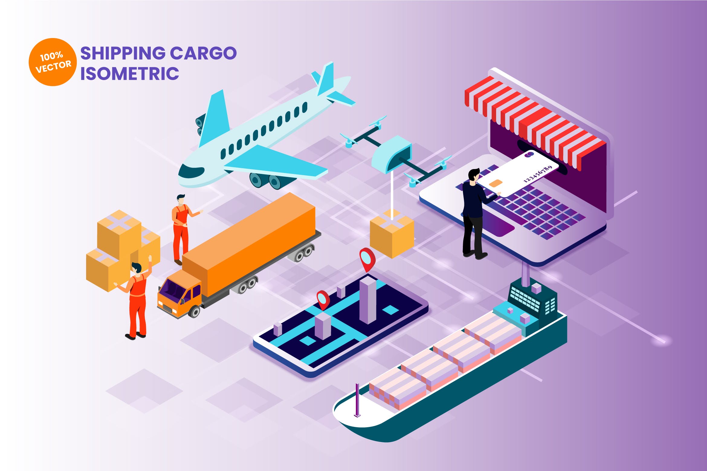 我们精心制作始终具有视觉吸引力的高质量等距向量资产。 在本系列中,我们向您介绍运输货物矢量图。 您可以将其用于您的项目,例如网络图形,着陆页,横幅,图标,地图,信息图表,社交媒体,书籍和其他相关的插图用途,并且对于您的项目目标总是很棒。