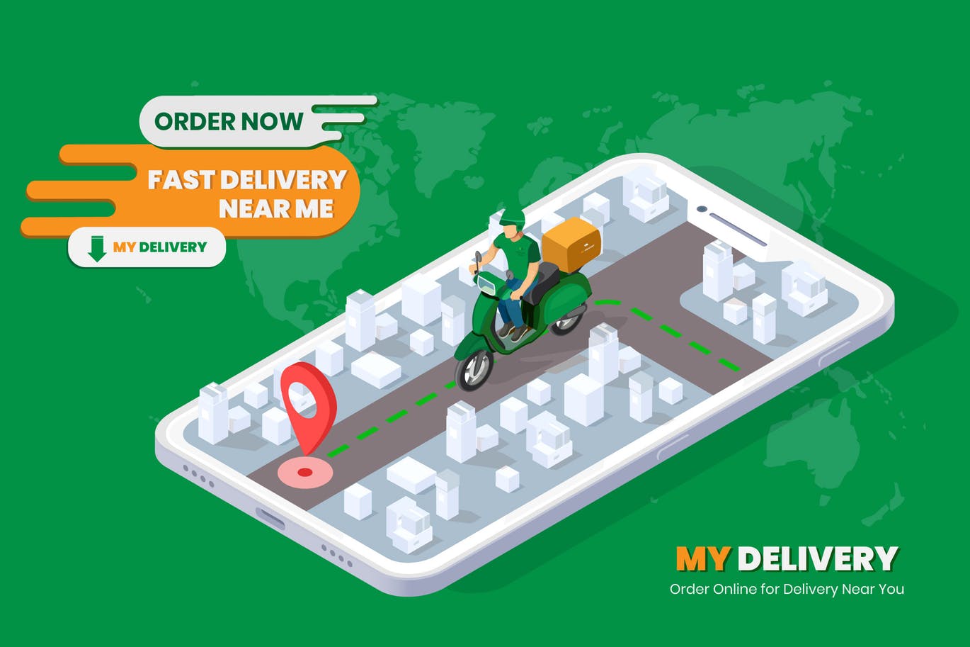 这次老不湿分享的是,2.5D等轴等距3D立体快递外卖插画banner海报设计模板(AI,EPS,JPG,PNG,PSD),快速投放等距横幅模板用于登陆页面模板或横幅模板。网页,网站和移动网站的现代平面矢量图概念。易于编辑和自定义。
