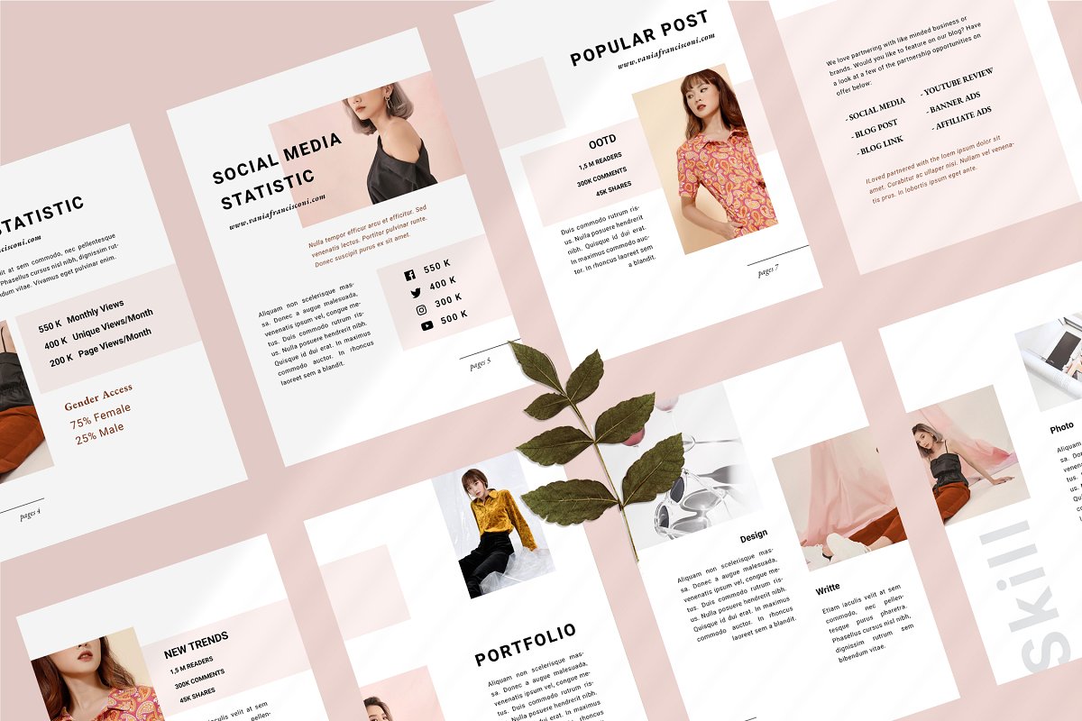 这是一款优雅时尚的博客媒体套件模板,适用于时尚博主、美容博主、时尚博主、时尚企业、美容师和造型师等。