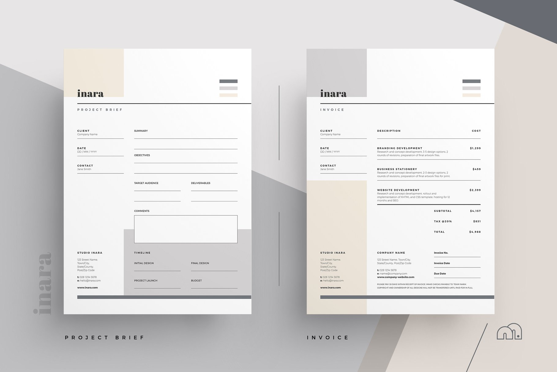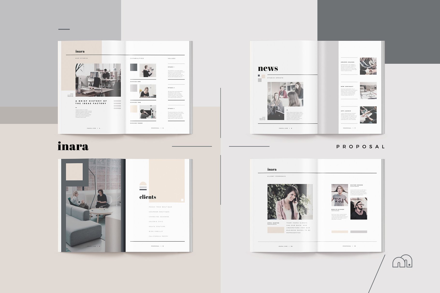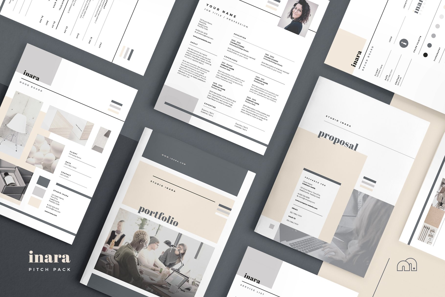 对于那些寻求专业演示文稿的人,Adobe InDesign的Inara Pitch Pack提供了一种现代而优雅的设计,包括从推销到向客户收费所需的所有内容。从您最初的介绍到向客户推销您的产品,然后展示您的想法,最后进行计费,所有必需的模板都包含在相同的Inara风格中,以保证整个项目的一致性。