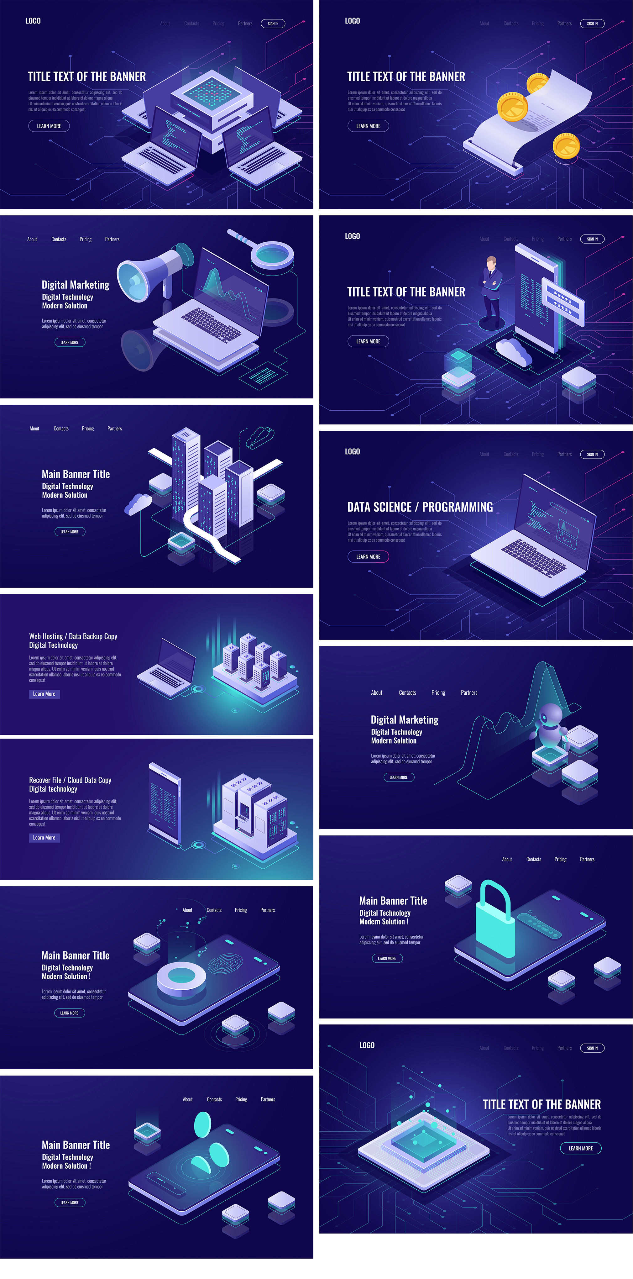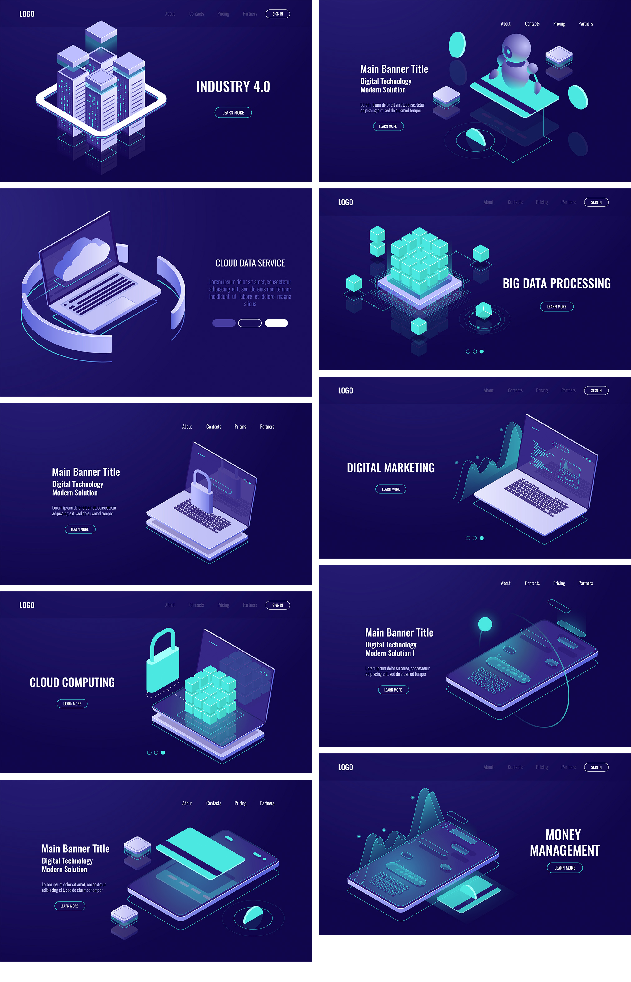 20+大数据、云计算、金融科技2.5D插画着陆页模板;