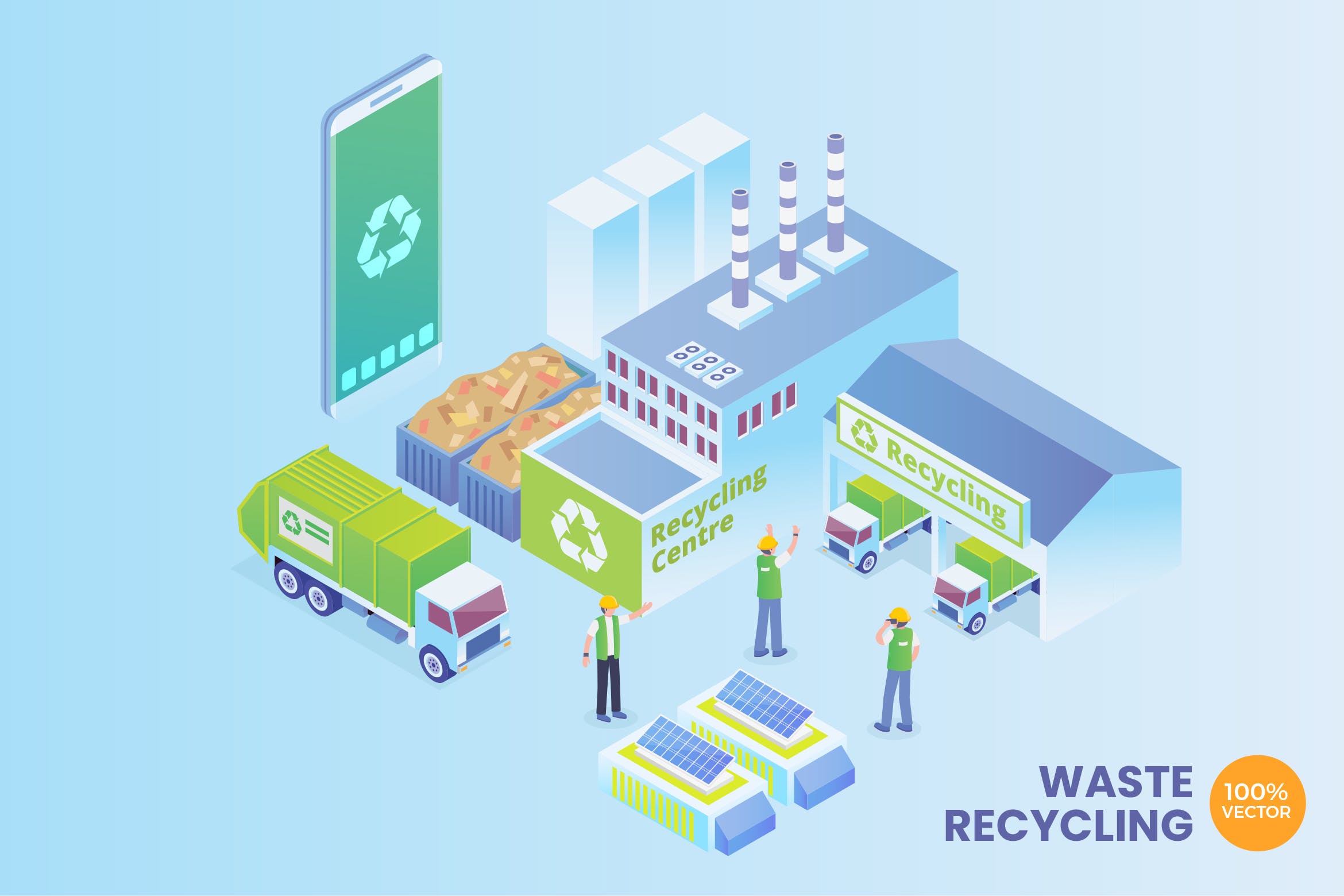 这次分享的是,2.5D风格的智能绿色环保科技新能源创意概念插画下载[Ai,EPS],