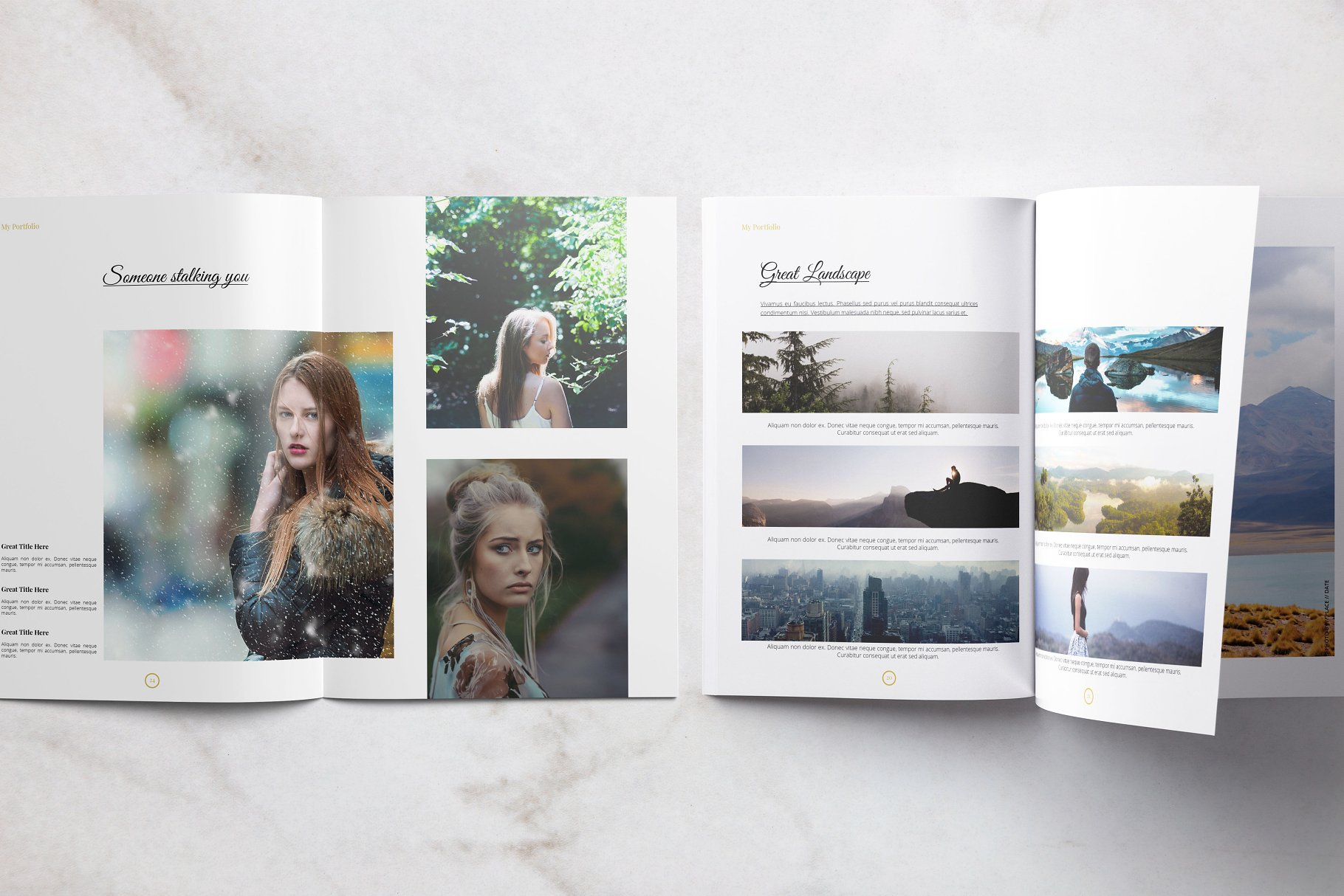 作品集是惊人的摄影 & 旅游组合28页与变化布局的混合和匹配页。这是为出版杂志、作品集、摄影等等准备的。