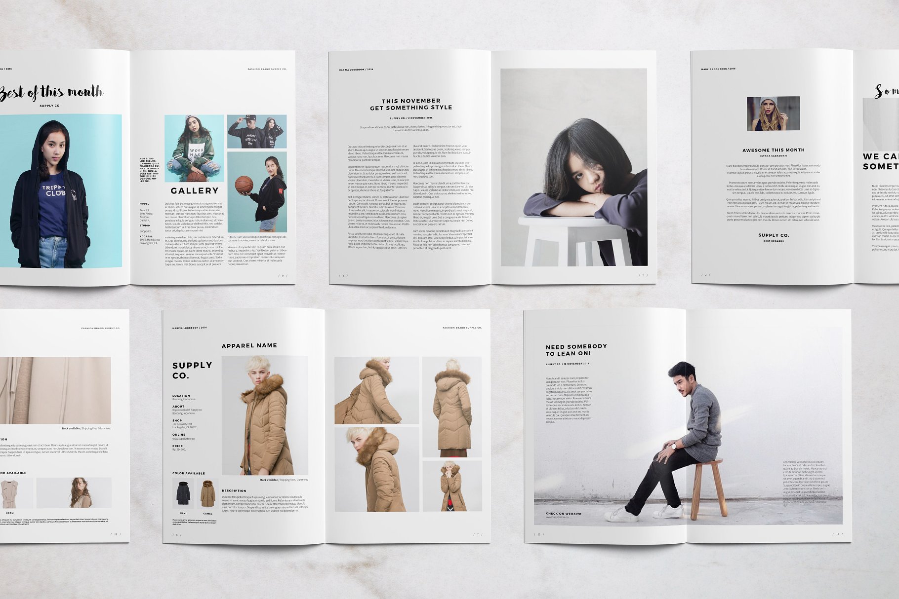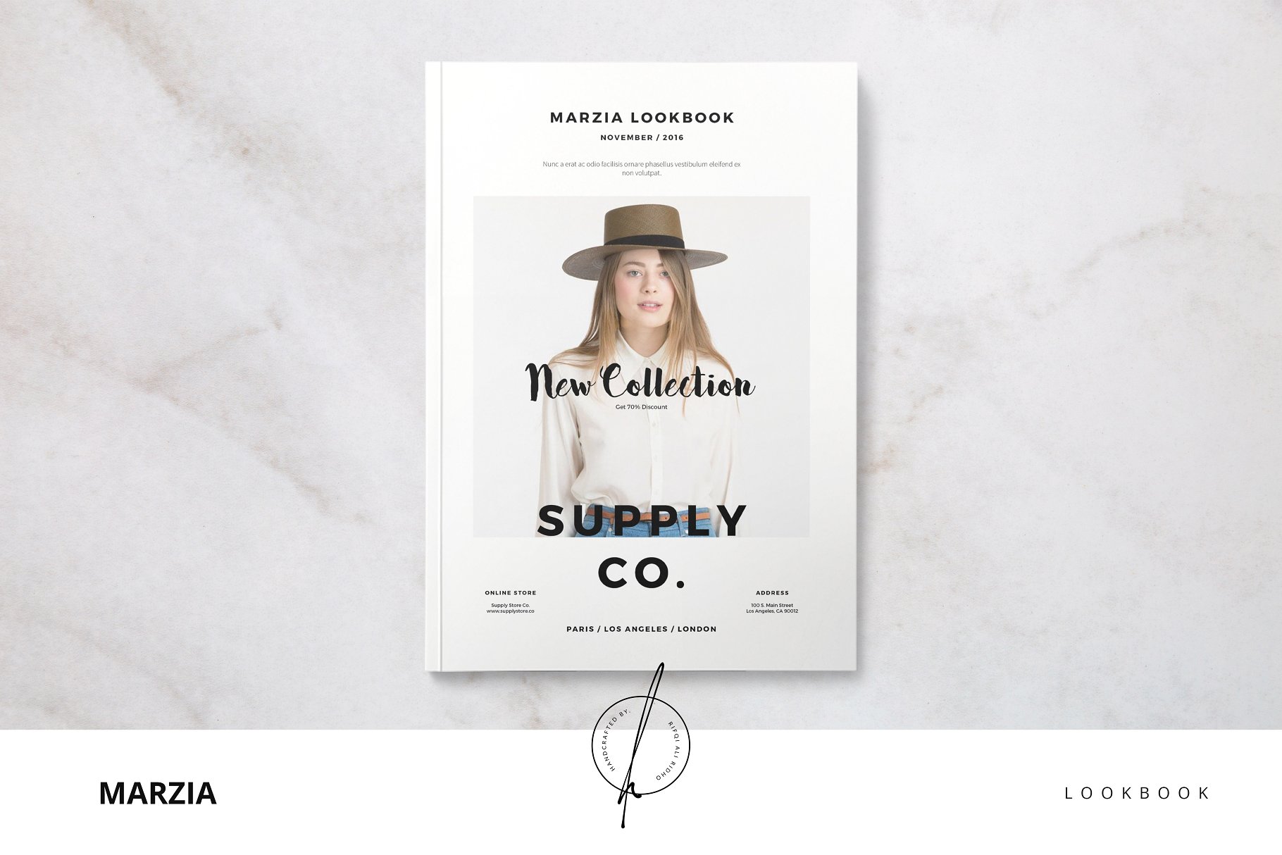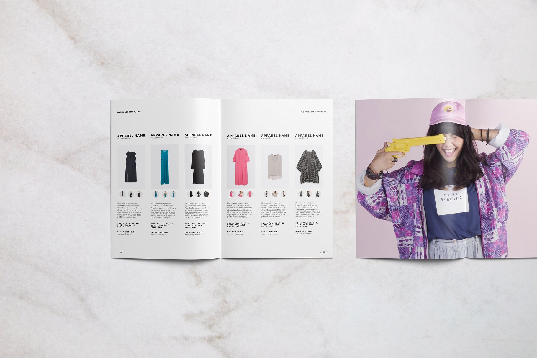 Marzia Lookbook有26页, 与具有生活气息的布局和干净的时尚产品,用这个模板销售你的好产品,你可以用Indesign制作自己的。该模板可以用于lookbook、小册子、杂志、作品集等。易于改变所有颜色,资产和更多与Indesign。