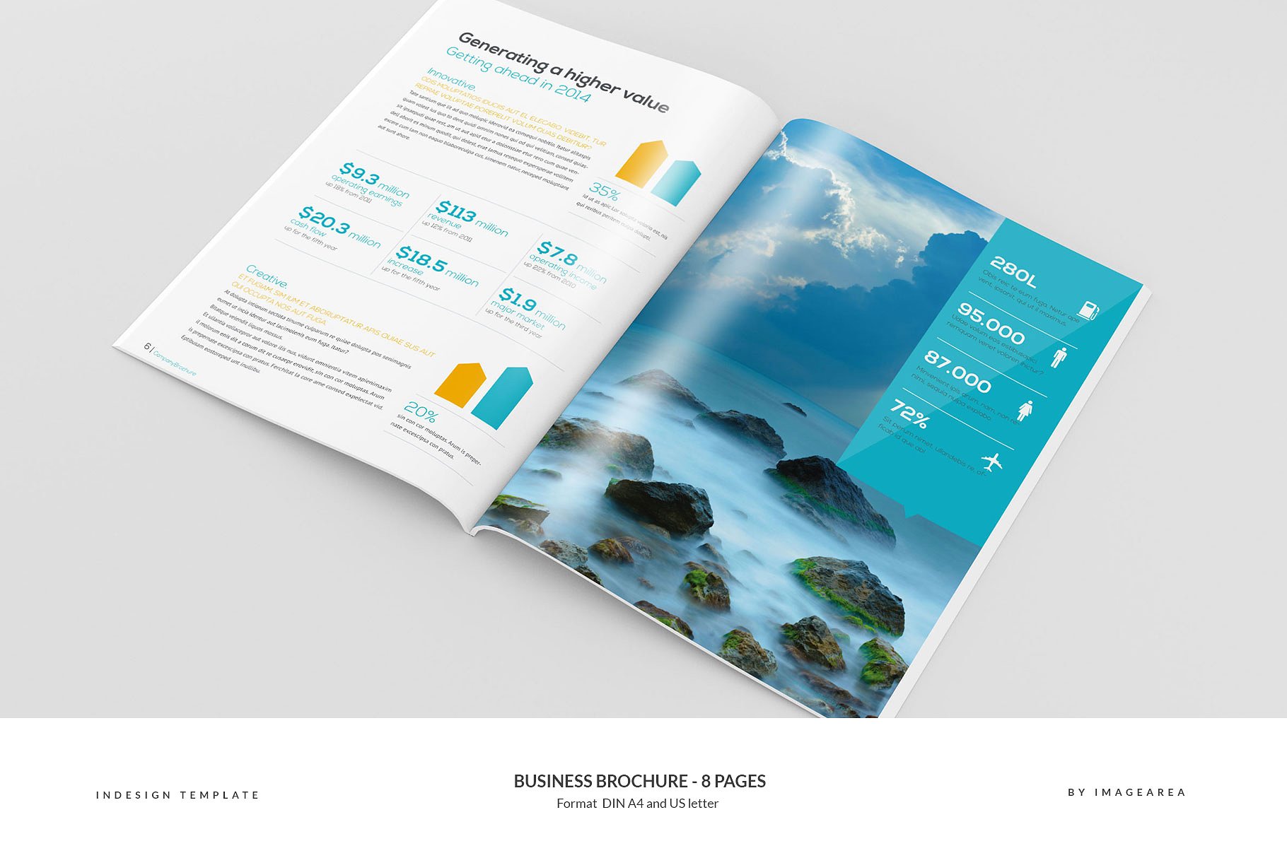 这是一个8页的公司手册或报告InDesign模板。格式是A4(210×297毫米)和US letter(8.5×11英寸),3毫米/ 0.125英寸。文件是完全可编辑和打印准备。图像不包括,但所有图形作为矢量。包括段落和字符样式,包括母版页。