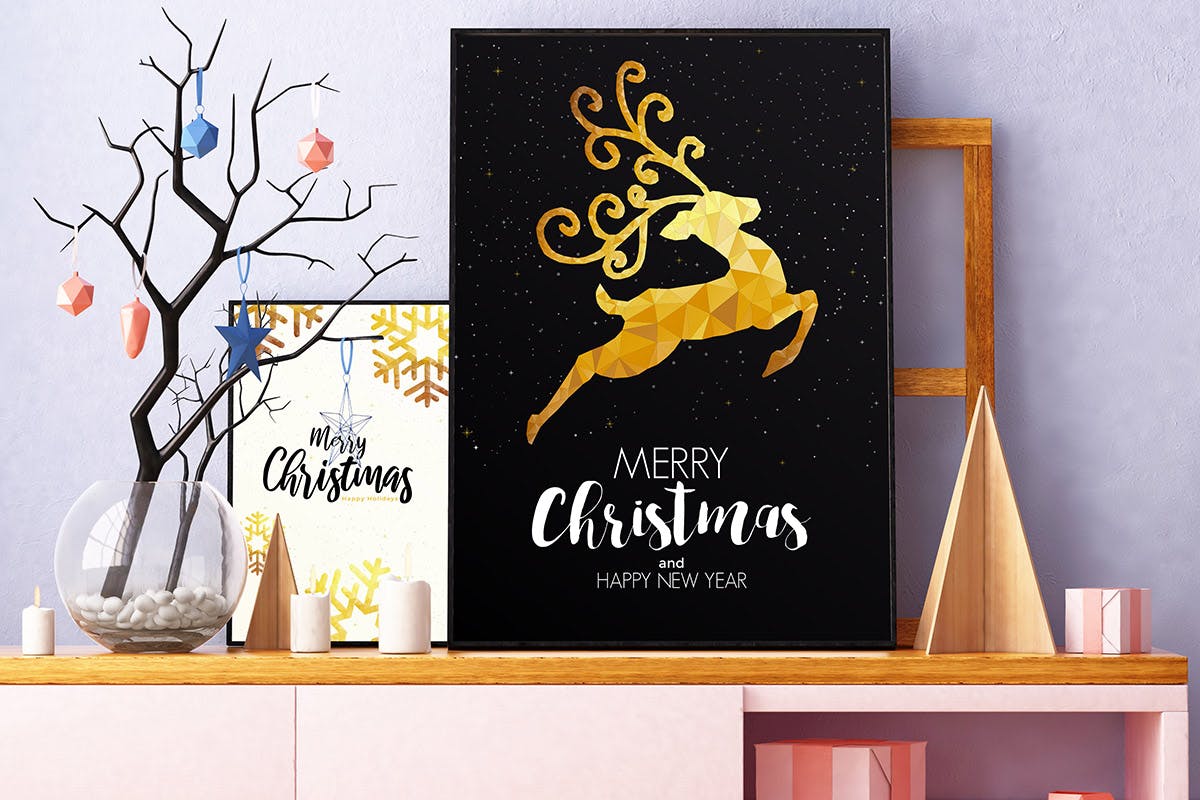 这次老不湿分享的是,时尚简约好用的新年圣诞节海报宣传册手册画册设计模板,在A4大小的圣诞快乐和新年快乐小册子设计版面模板,在多角形origami样式做的贺卡。党的海报,贺卡,横幅或邀请的理想选择。由三角形组成的装饰品。矢量图