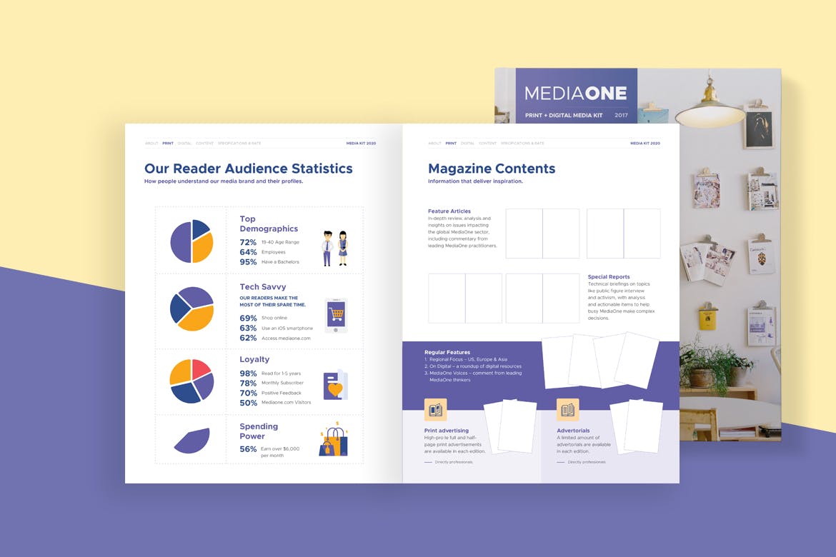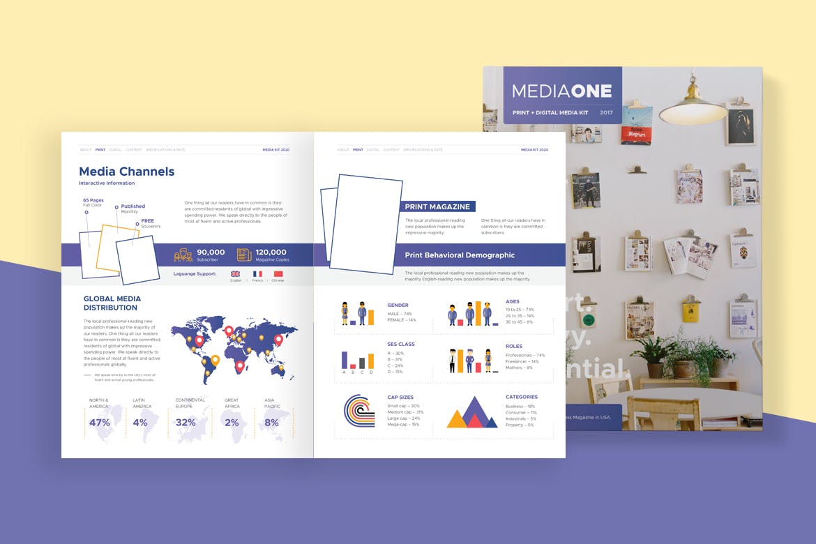 这次老不湿分享的是,时尚高端简约多用途的大数据时尚杂志房地产楼书品牌手册画册书籍装帧设计模板,概述了有关您的印刷媒体,网站或博客的重要事实和统计数据。对于您希望与之合作的潜在广告客户或品牌而言,它是重要的工具。此媒体工具包包含统计页面,有关媒体,受众,印刷媒体规格,您网站的数字媒体规范,博客或应用程序。该文件还包括媒体费率和活动页面。开始与潜在广告客户分享您的媒体优惠!