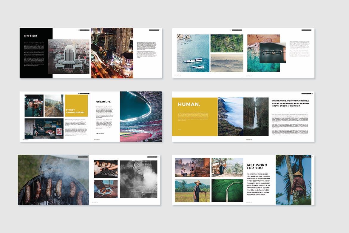 这次老不湿分享的是,时尚高端大气的多用途摄影作品集房地产楼书品牌手册画册时尚杂志标书设计模板(indd),适用于任何时尚外观,创意,博客,杂志,零售,摄影师,艺术家,设计师以及更多时髦主题的模板。