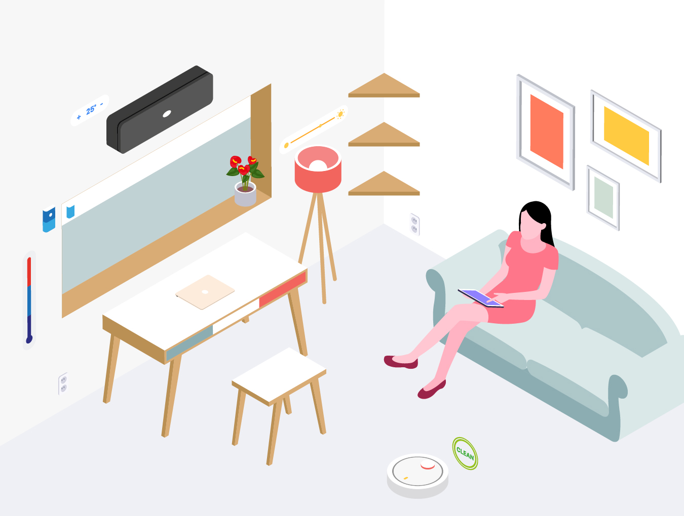 今天分享的素材是,2.5D视角的物联网智能居家创意场景插画素材,绘制精良,透视角度完美,直接学习和借鉴,enjoy!
