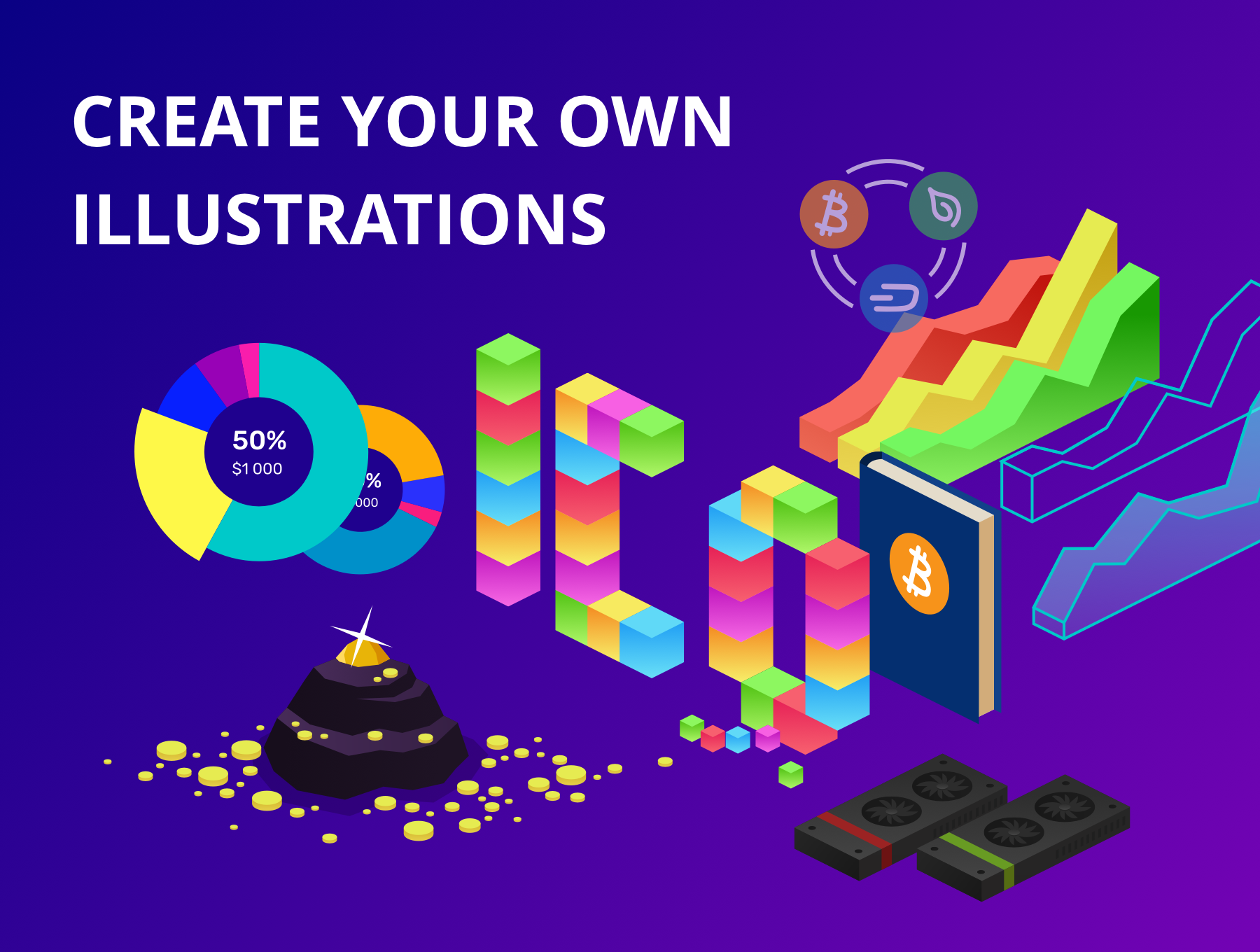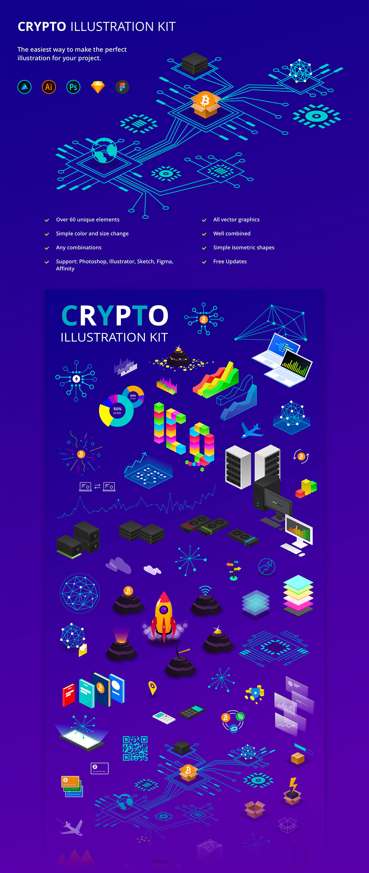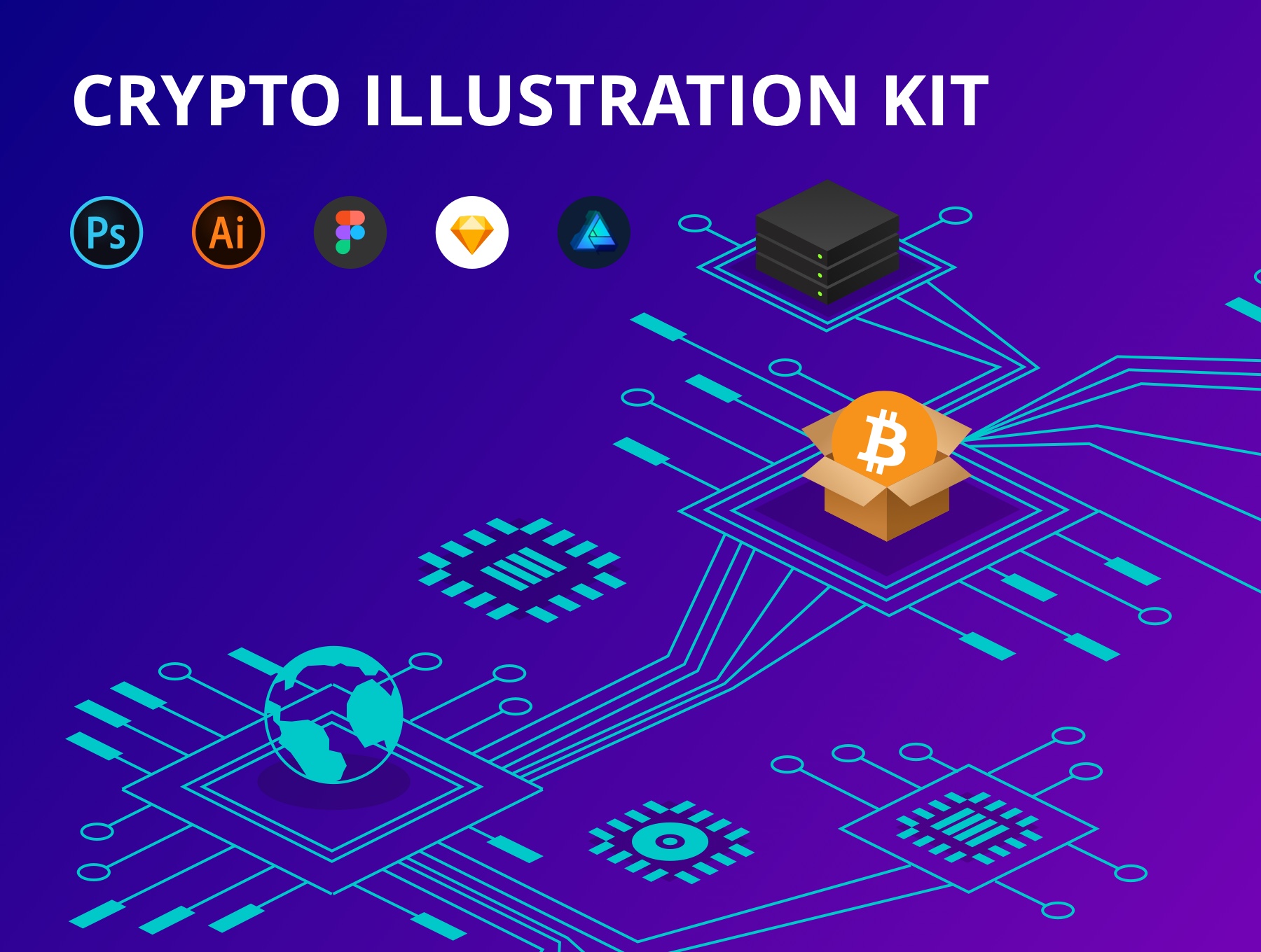 这次分享的是,2.5D区块链科技概念设计插图,这套效果很好,适合打造区块链相关的科技创意广告图,enjoy!
