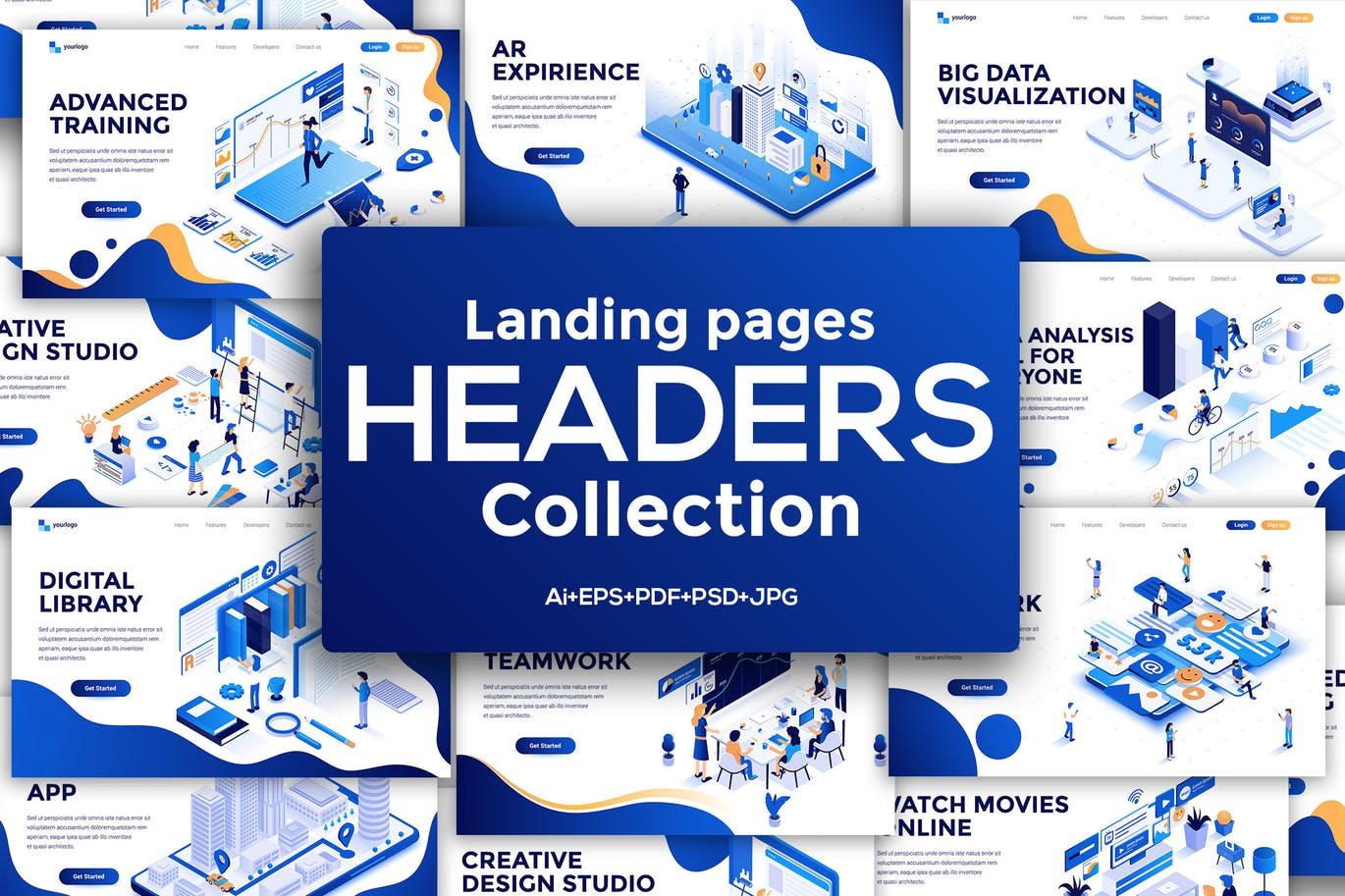 这次老不湿分享的是,时尚现代高端3D立体2.5D等轴等距平面设计概念banner着陆页插画海报设计模板,在各种主题的现代平的设计等量概念网站和流动网站的。着陆页模板。易于编辑和自定义。由于矢量形状和组织良好的图层,概念易于编辑,自定义和调整大小。