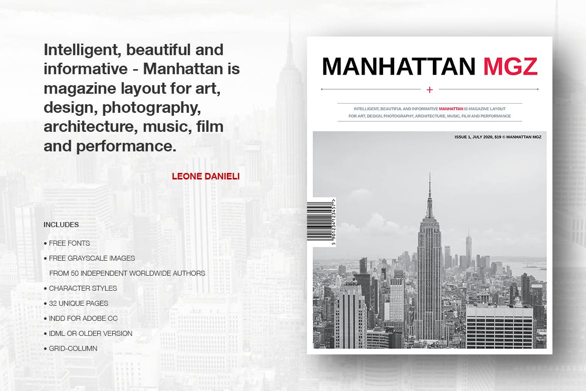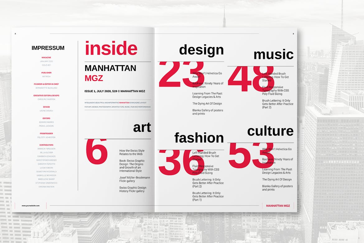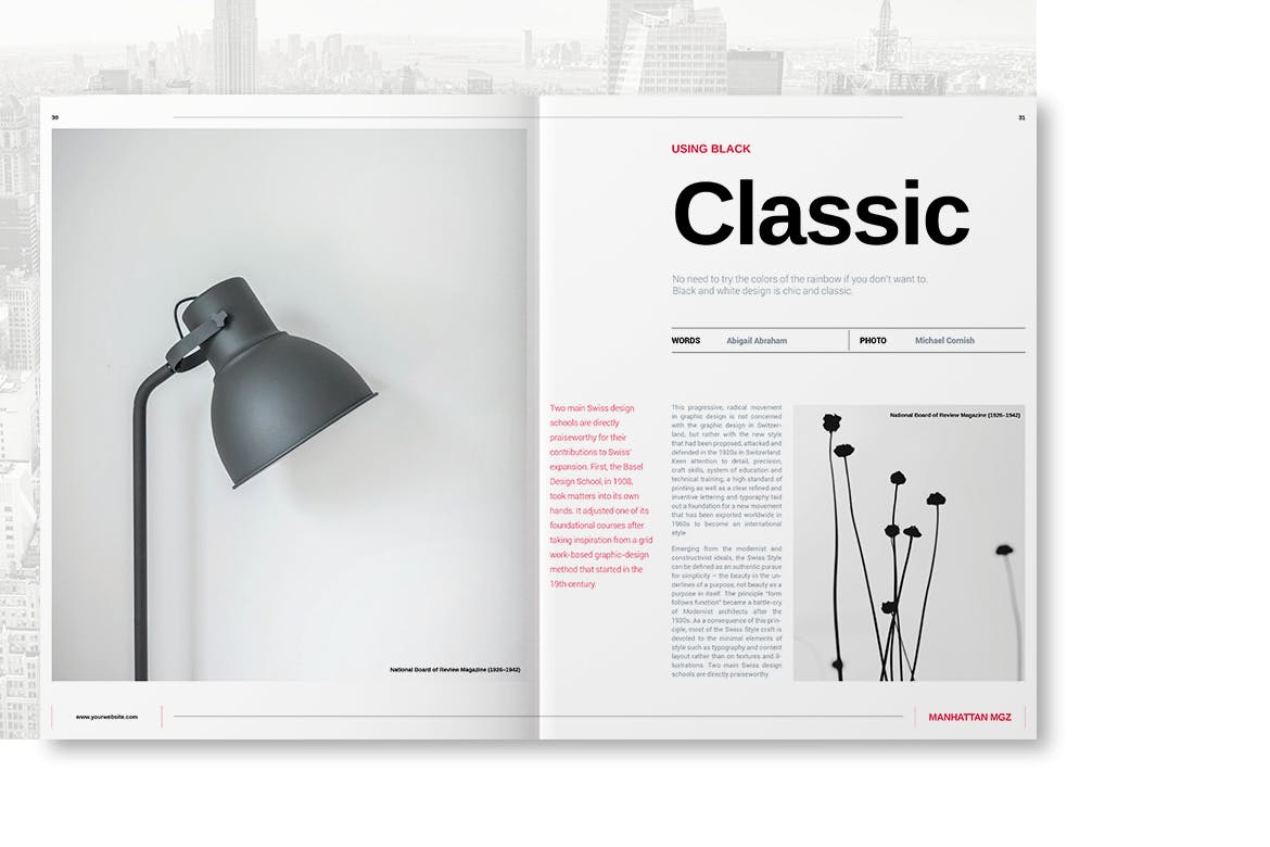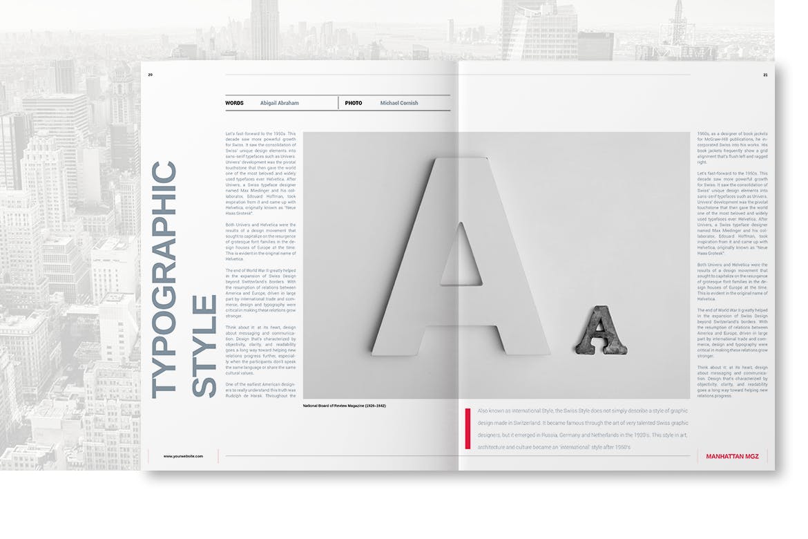 曼哈顿MGZ是一种专业品质,易于使用的艺术品。该模板具有最小的设计,出色的空白使用和强大的字体使用,包含了很多适合各种项目的页面布局。