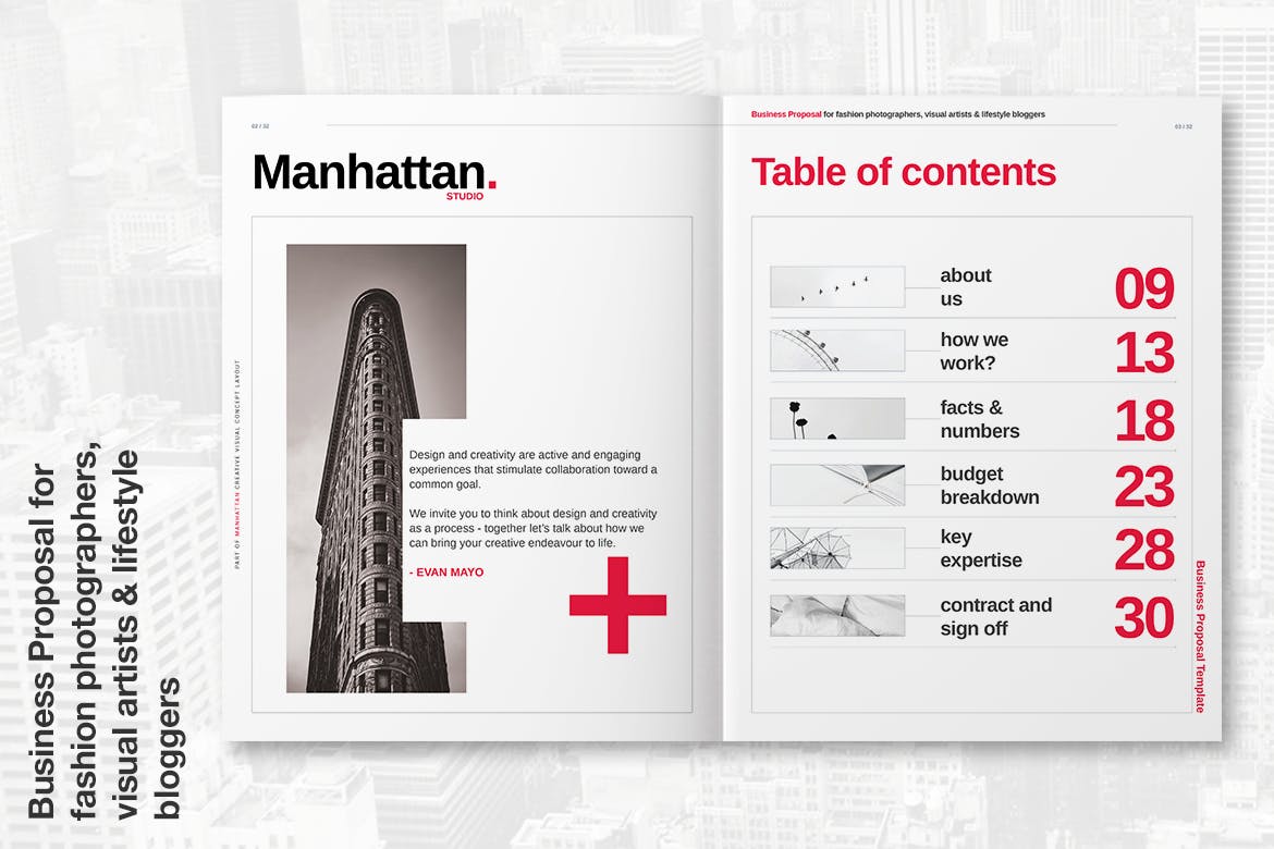 Manhattan Business Proposal是一种专业品质,易于使用的艺术品。该模板具有最小的设计,出色的空白使用和强大的字体使用,包含了很多适合各种项目的页面布局。