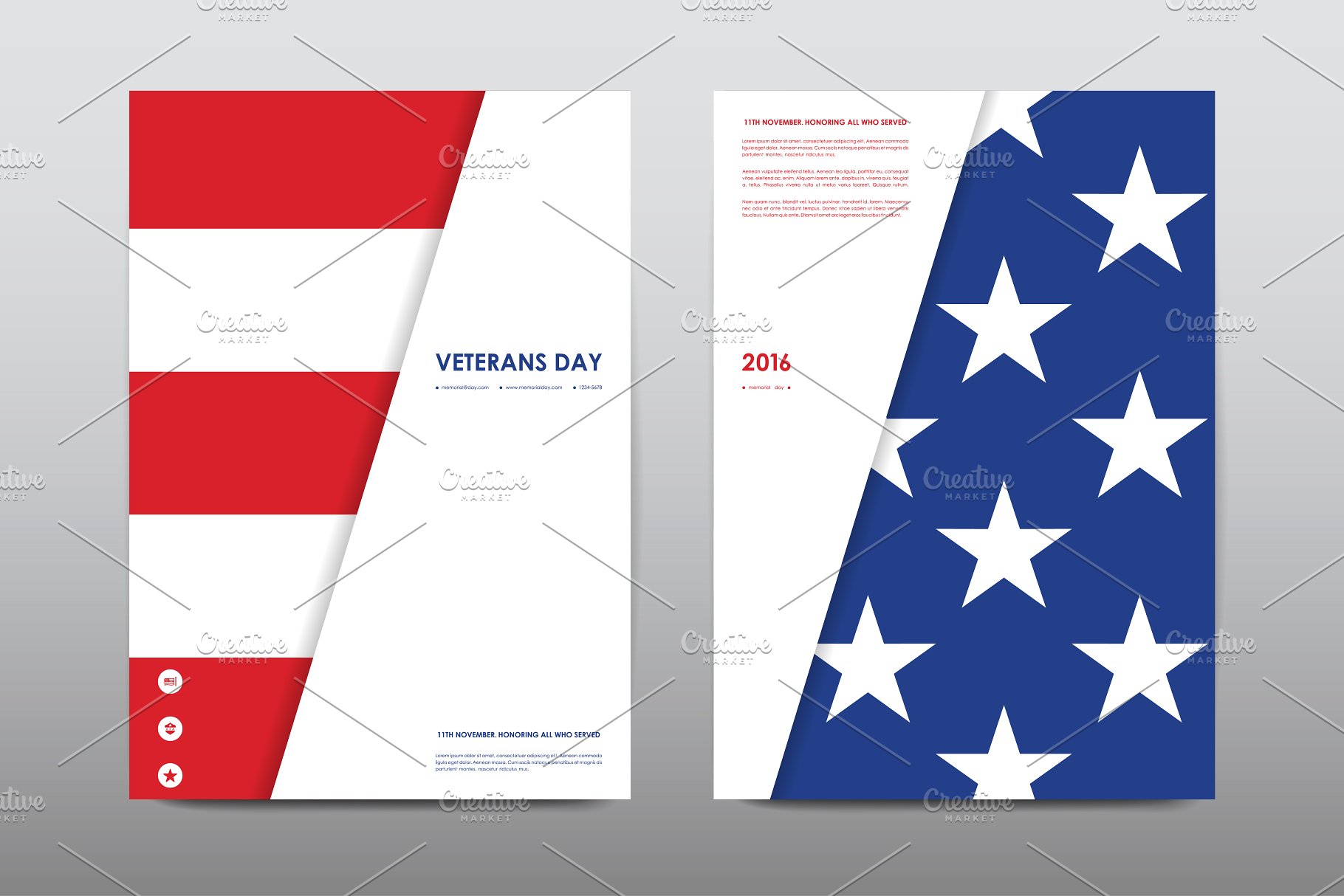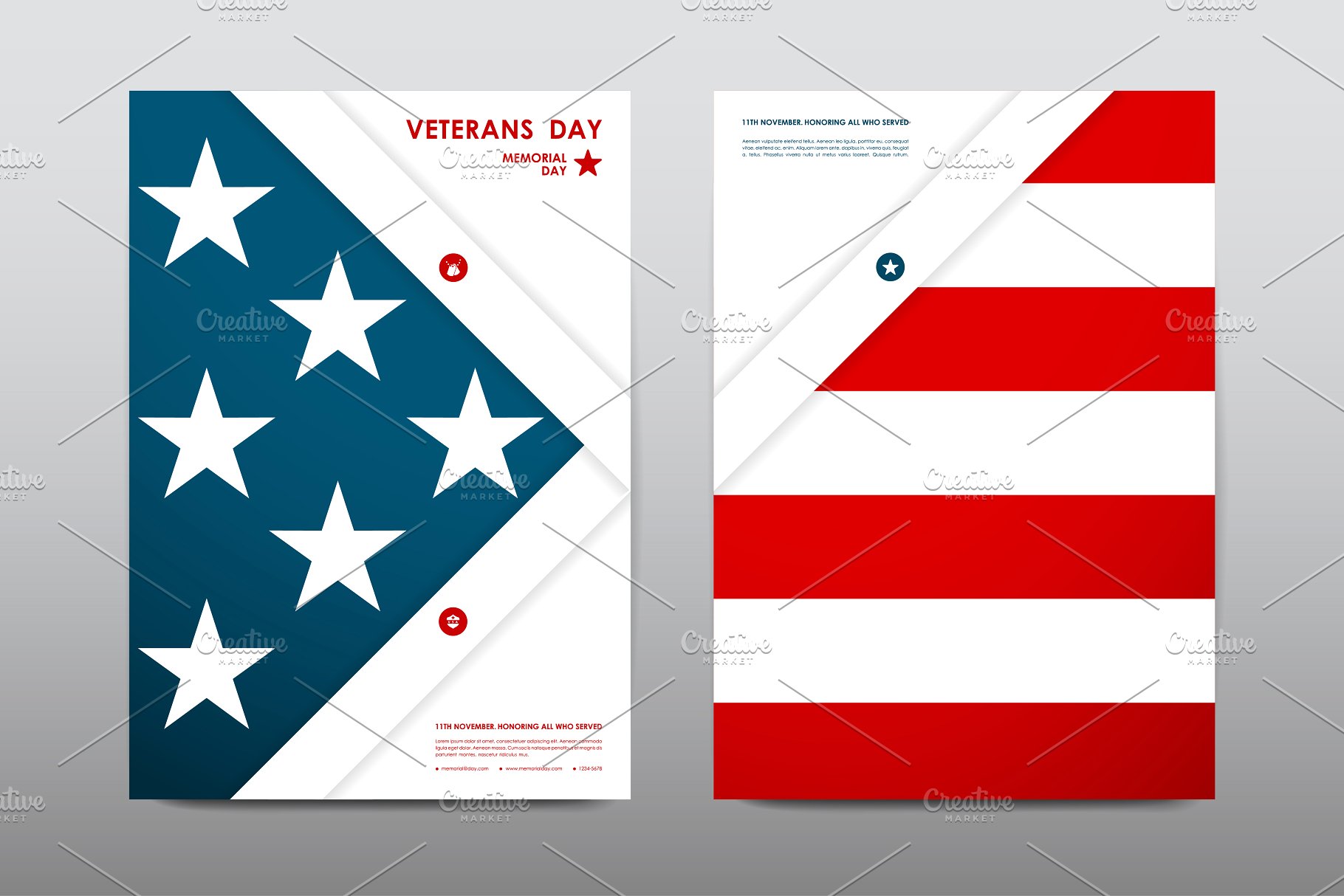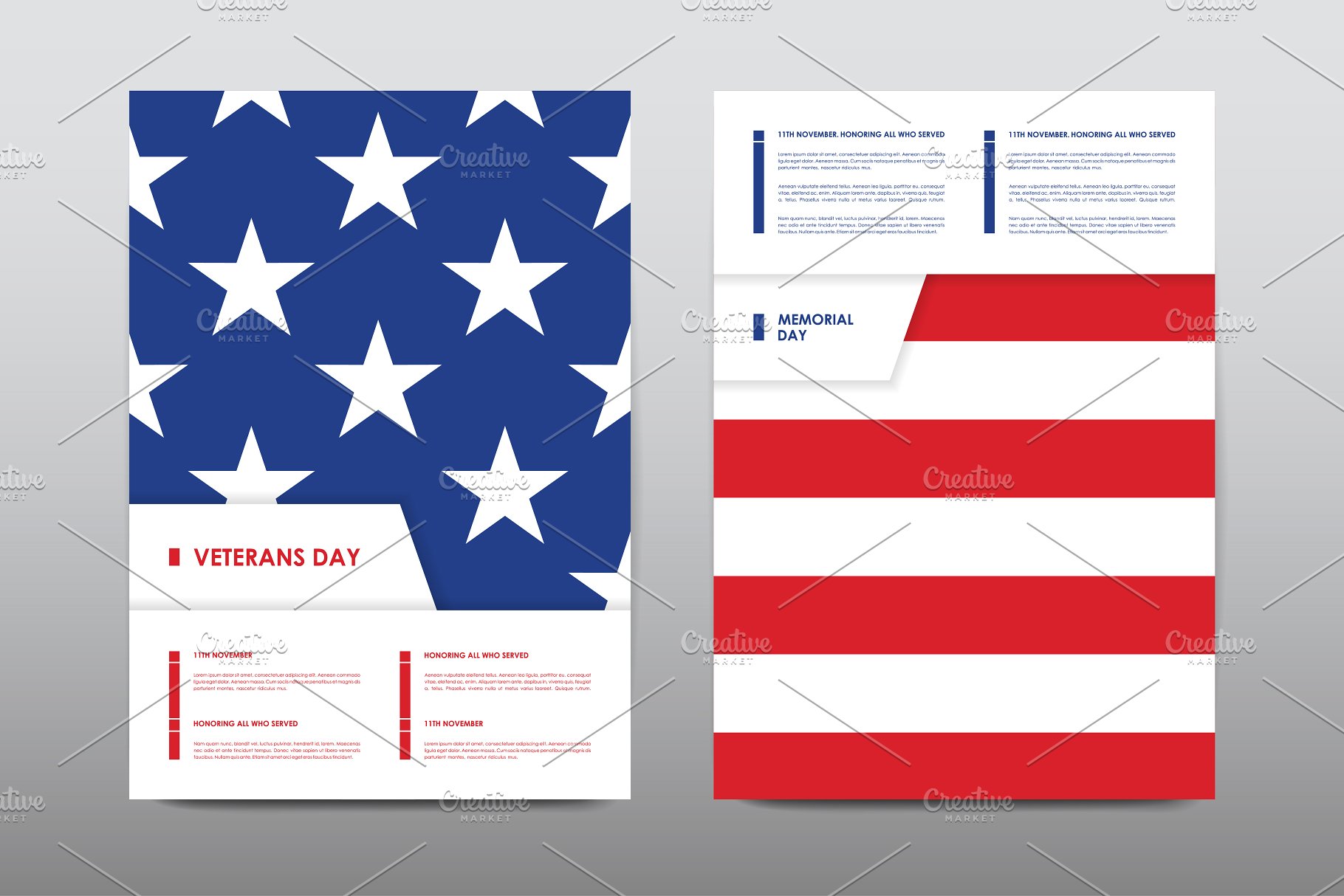 Set of Veterans Day Brochures templates in USA flag style. Beautiful design and layout一套美国国旗样式的退伍军人节宣传册模板。拥有美丽的设计和布局