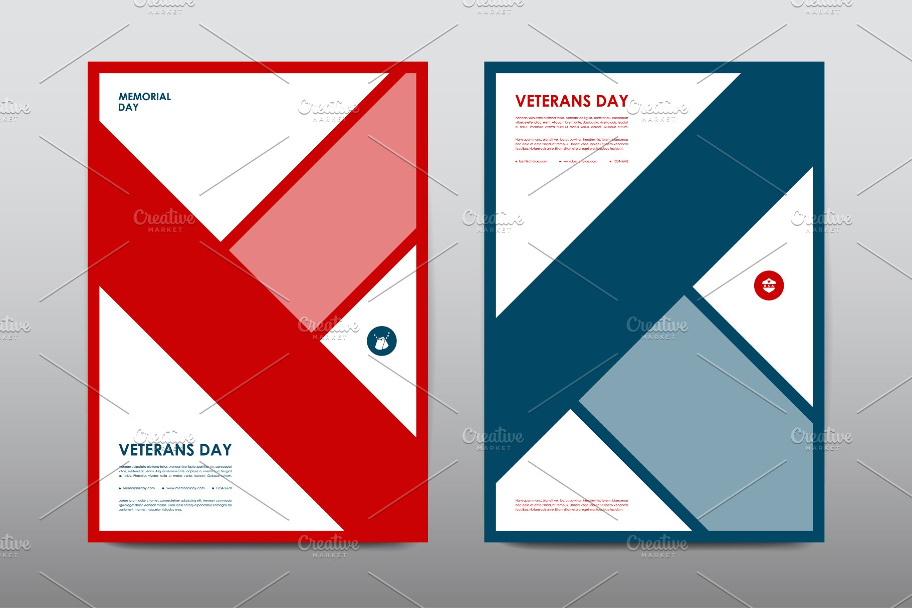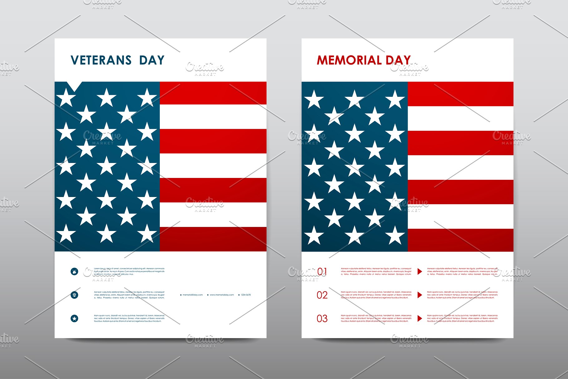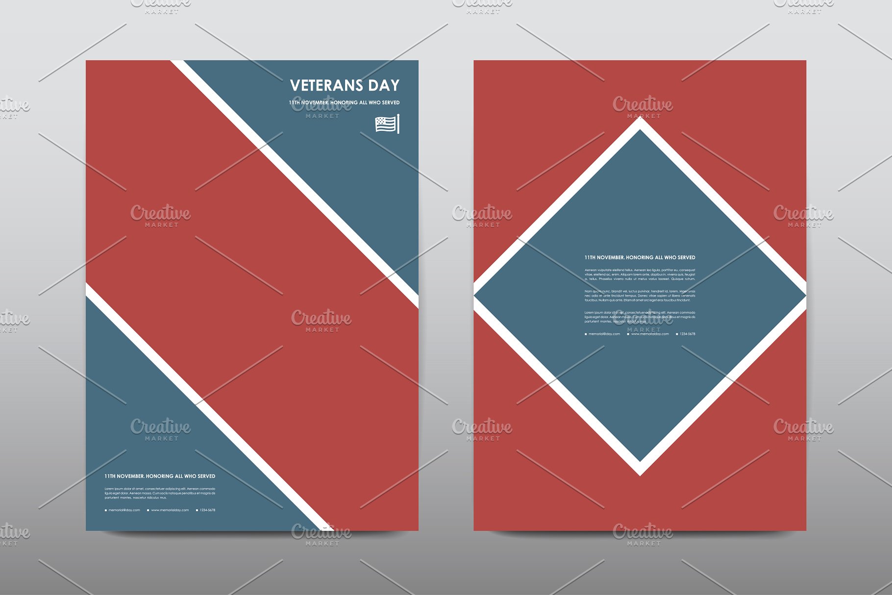 Set of Veterans Day Brochures templates in USA flag style. Beautiful design and layout一套美国国旗样式的退伍军人节宣传册模板。拥有美丽的设计和布局