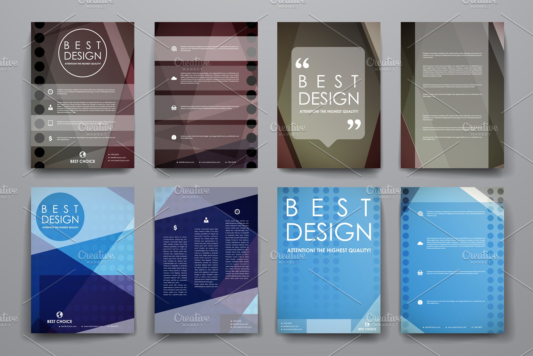 一套抽象风格的宣传册、海报模板。拥有美丽的设计和布局