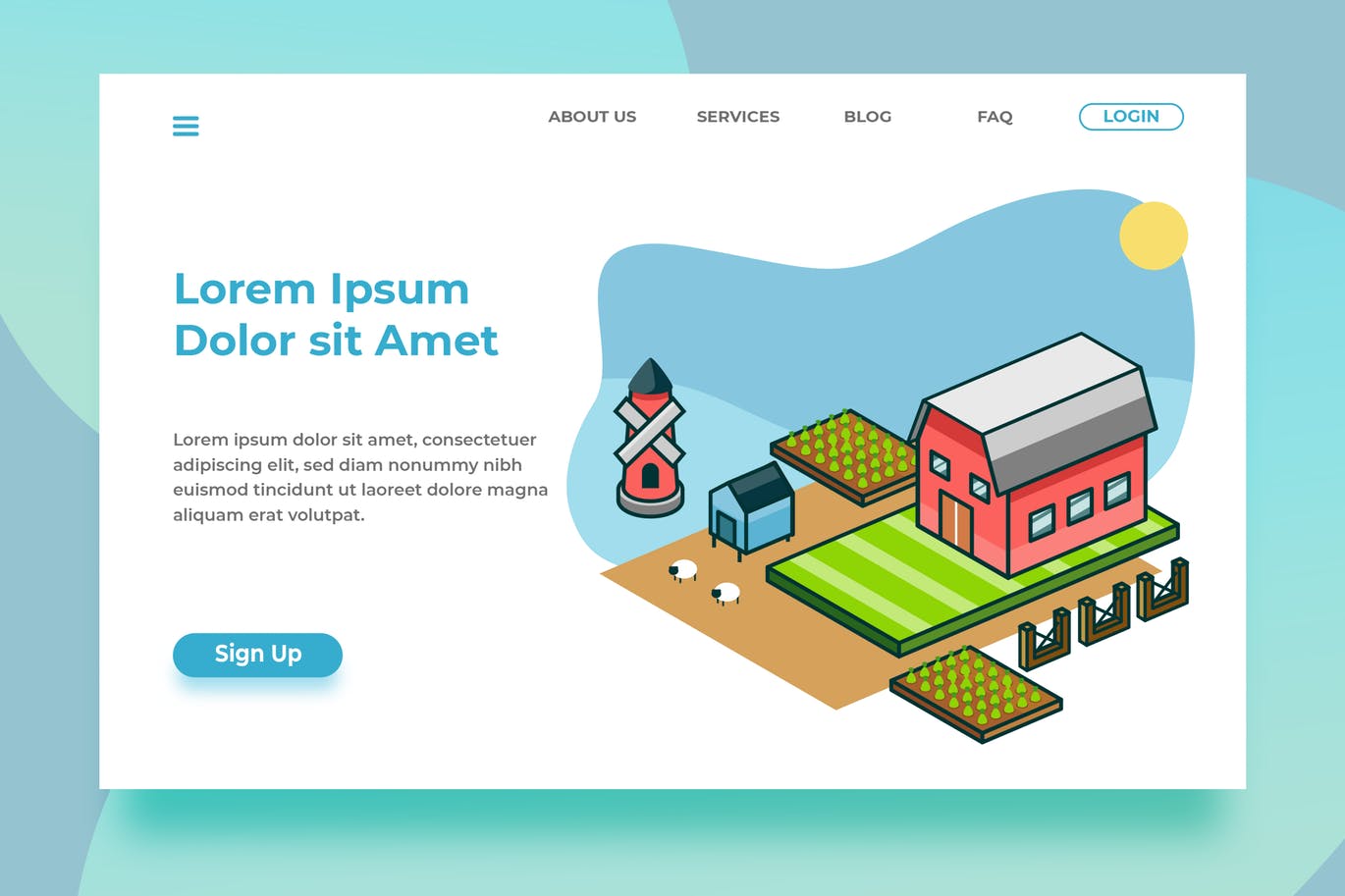 这次老不湿分享的是,时尚高端2.5D等轴等距健康绿色农村农场横幅banner着陆页海报登陆页面设计模板,非常易于使用和定制
