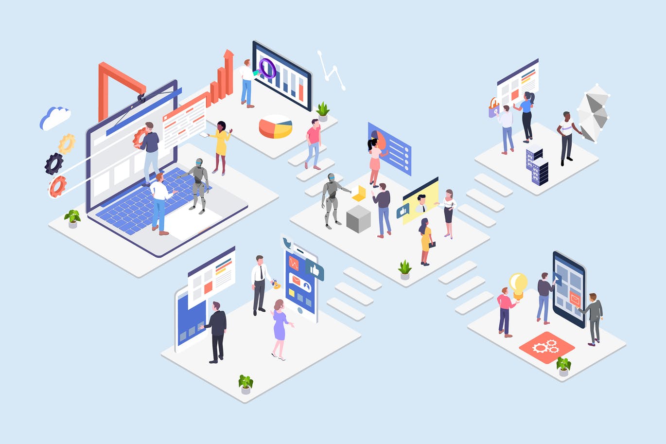 这次老不湿分享的是,高品质的时尚高端2.5D等轴等距比特币Blockchain区块链平台插图插画banner海报设计模板,AI文件