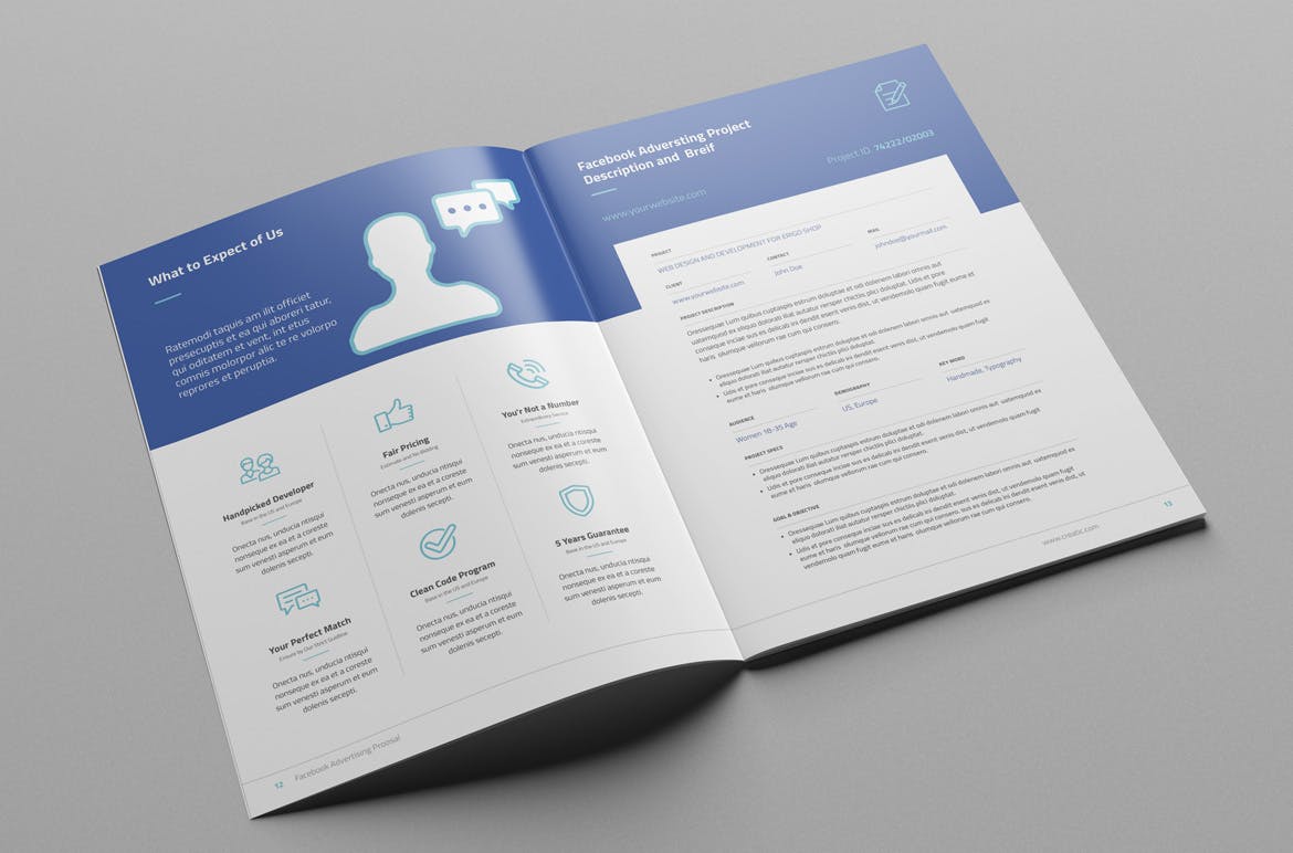这次老不湿分享的是,Facebook广告提案楼书画册品牌手册杂志设计模板(indd),非常专业的素材。它有两种纸张尺寸,包括A4和US Letter。