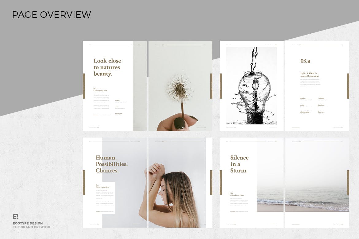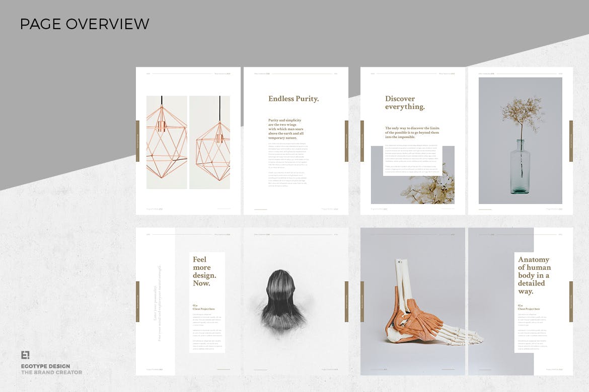 这次老不湿分享的是,高品质的高端时尚品牌手册画册楼书杂志设计模板(indd),用于任何项目目的。易于使用和定制。36页文档A4国际和美国字母大小基于网格的布局