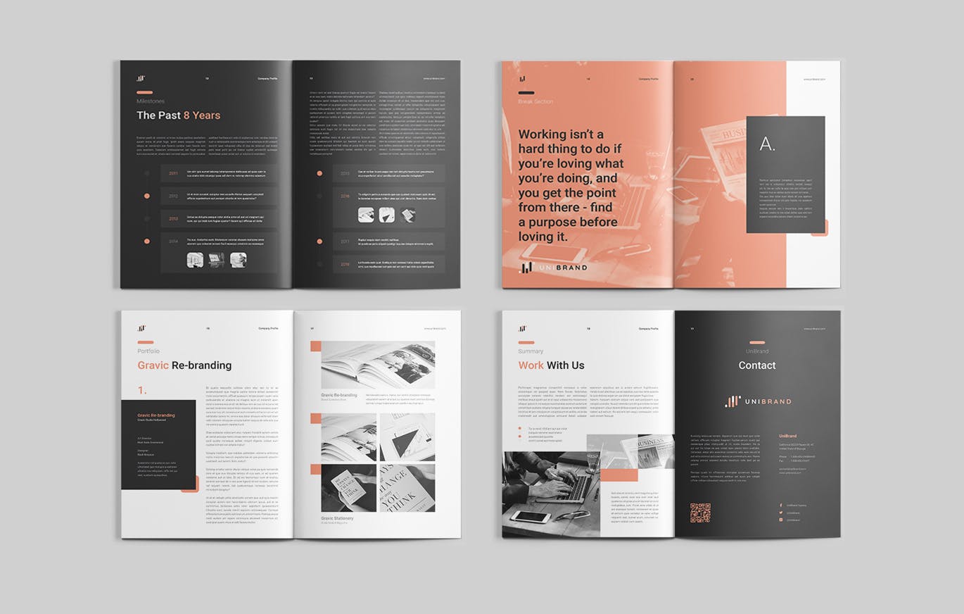 这次老不湿分享的是,非常高端时尚的企业形象手册画册楼书杂志设计模板(indd),现代布局模板,具有20pp Indesign文档/模板,并以A4(297x 210mm)和US Letter(8.5×11“)设计。该模板专为那些希望以时尚和优雅的方式呈现图表和文本的图像而设计。
