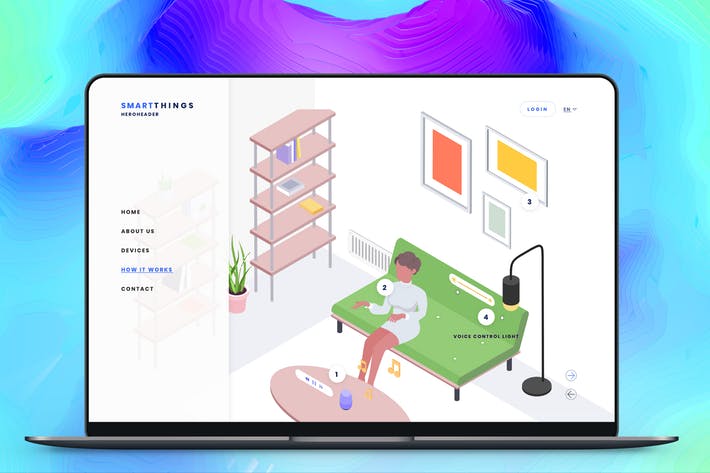 Elin今天分享滴是Smarthome项目的英雄标题Smartthings等距模板横幅和网站的。着陆页模板。矢量图。100%矢量