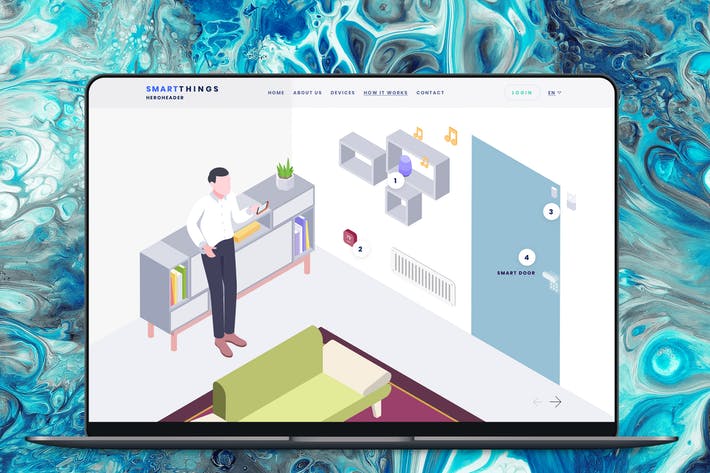 Elin今天分享滴是Smarthome项目的英雄标题Smartthings等距模板横幅和网站的。着陆页模板。矢量图。100%矢量