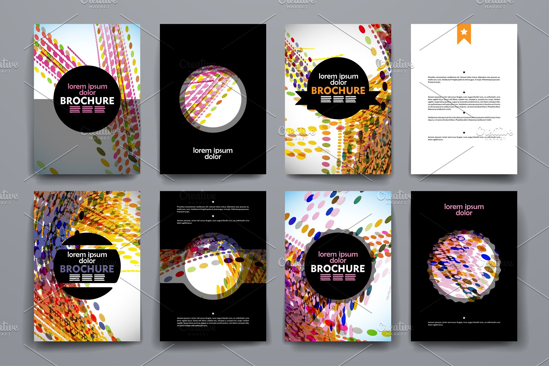 一套抽象风格的宣传册、海报模板。美丽的设计和布局,多彩的画册。