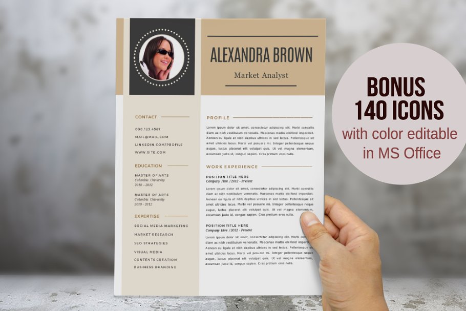 想把你的旧简历变成一份新的? 我们向你展示这个非常容易编辑的简历和封面模板MS Word (.docx)。它有你需要的一切来重新创建你的简历:一页的简历、求职信和推荐信。更重要的是,你不需要Photoshop、Adobe Illustrator、InDesign或类似的软件。这是一个纯粹的Microsoft Word简历模板,你可以用这个程序轻松地编辑它。