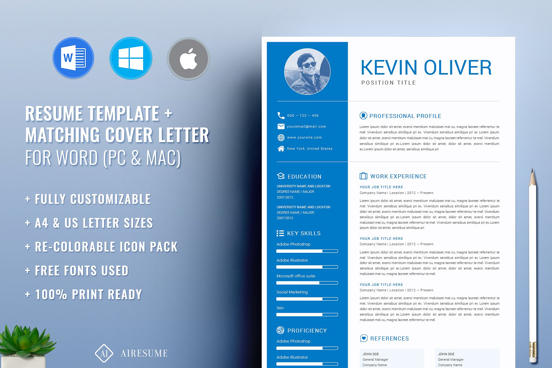 一个专业设计,简单现代的简历模板,这有助于你达到目标。非常容易定制,您可以对这些模板进行任何类型的调整,以适应您的口味。