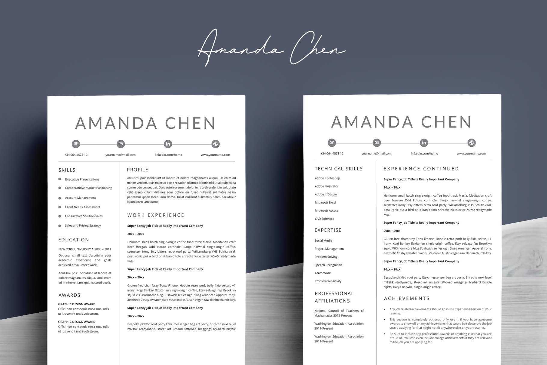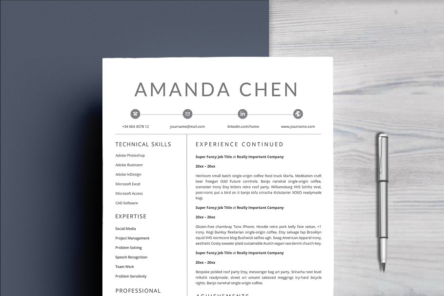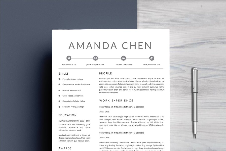 这个专业的简历模板正是你更新旧简历所需要的! 创意和时尚的同时,仍然是专业的,用了这个简历模板,你一定会脱颖而出滴。该设计是可定制的,所以您可以轻松地修改它,您可以简单地用您自己的信息替换填充文本并添加您自己的照片。