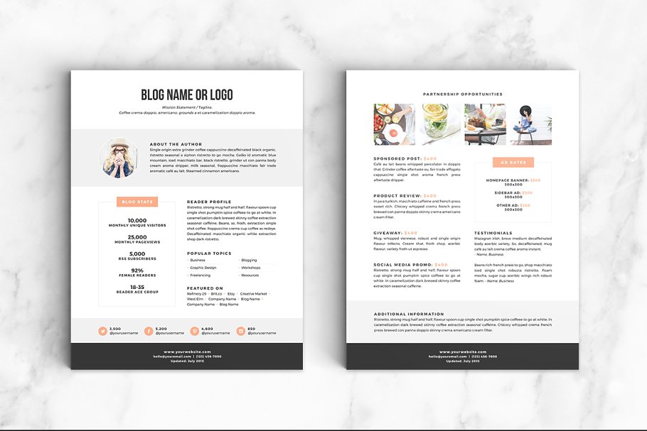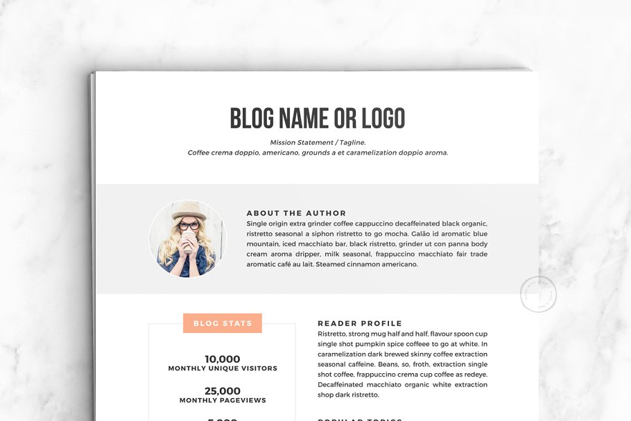 媒体包是博客/网站服务、统计数据、浏览者统计数据和社会关注的快速快照。拥有一个干净、光亮的工具包是向潜在的赞助商和合作者宣传你的努力工作的完美方式。