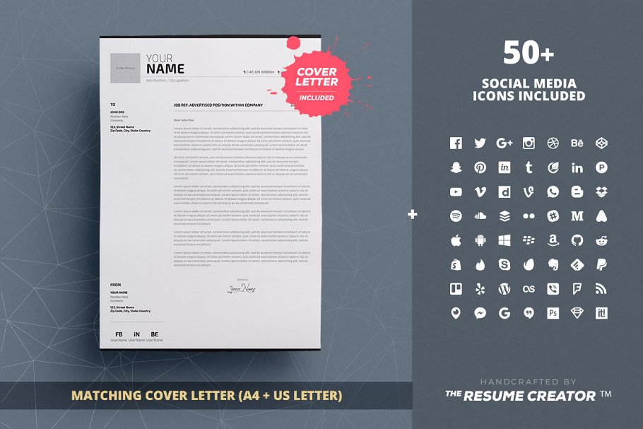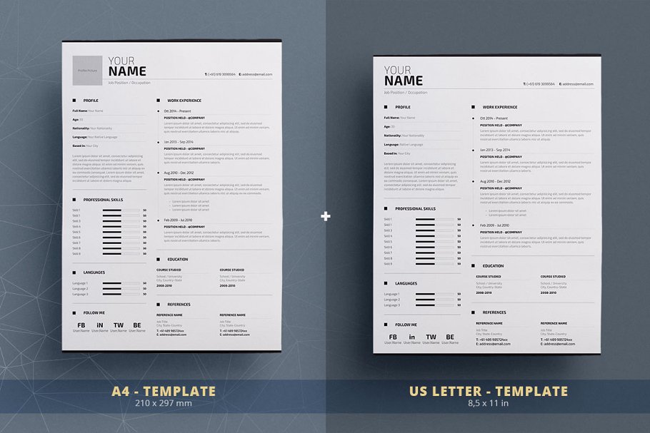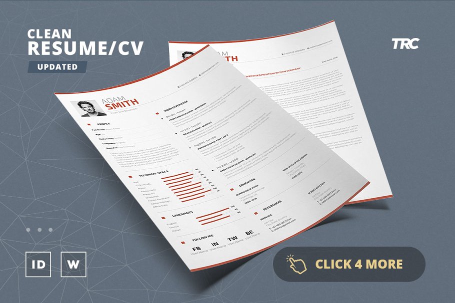 今天介绍的这款简历模板,设计非常专业,白色的背景看起来简洁大方,有具有创意性,如果你想给面试官留下一个深刻的印象,尝试一下它吧,也许就是你在寻找的哦!完全可在Adobe InDesign和Microsoft Word中定制。无限编辑一次又一次使用!