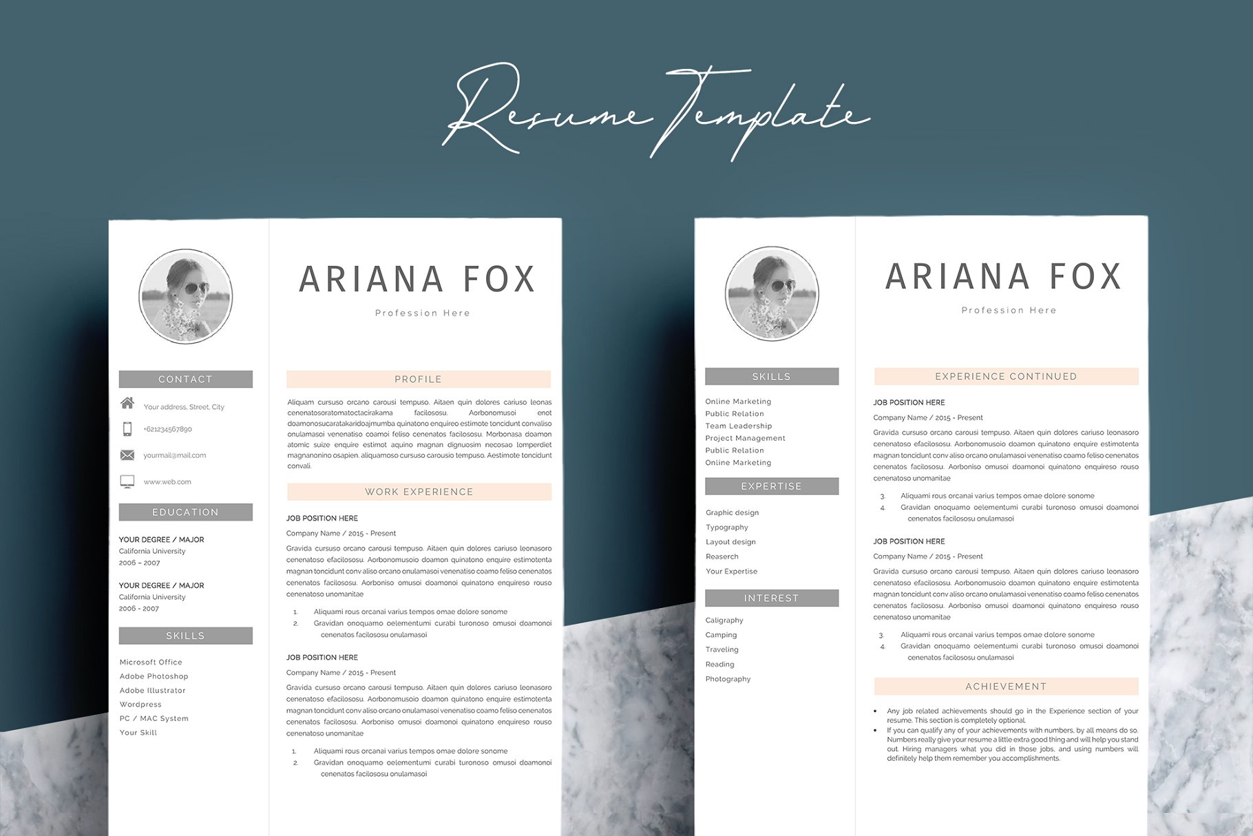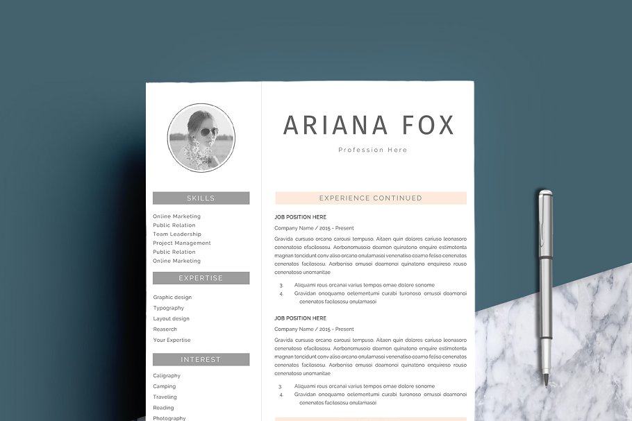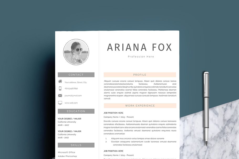 这个专业的简历模板正是你更新旧简历所需要的!创意和时尚的同时,仍然是专业的,有了这个简历模板,你一定会脱颖而出滴。 该设计是可定制的,所以您可以轻松地修改它,您可以简单地用您自己的信息替换填充文本并添加您自己的照片。我们专业设计的简历模板不仅能帮你节省时间,还能帮你整理招聘人员需要的所有重要信息,让你的简历看起来更专业。