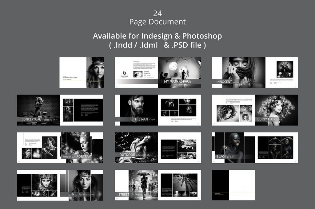 今天给大家分享的是一套高端黑白色调摄影题材画册打包下载[indd、psd],双格式文件各24张,简洁独特的布局,你值得拥有!