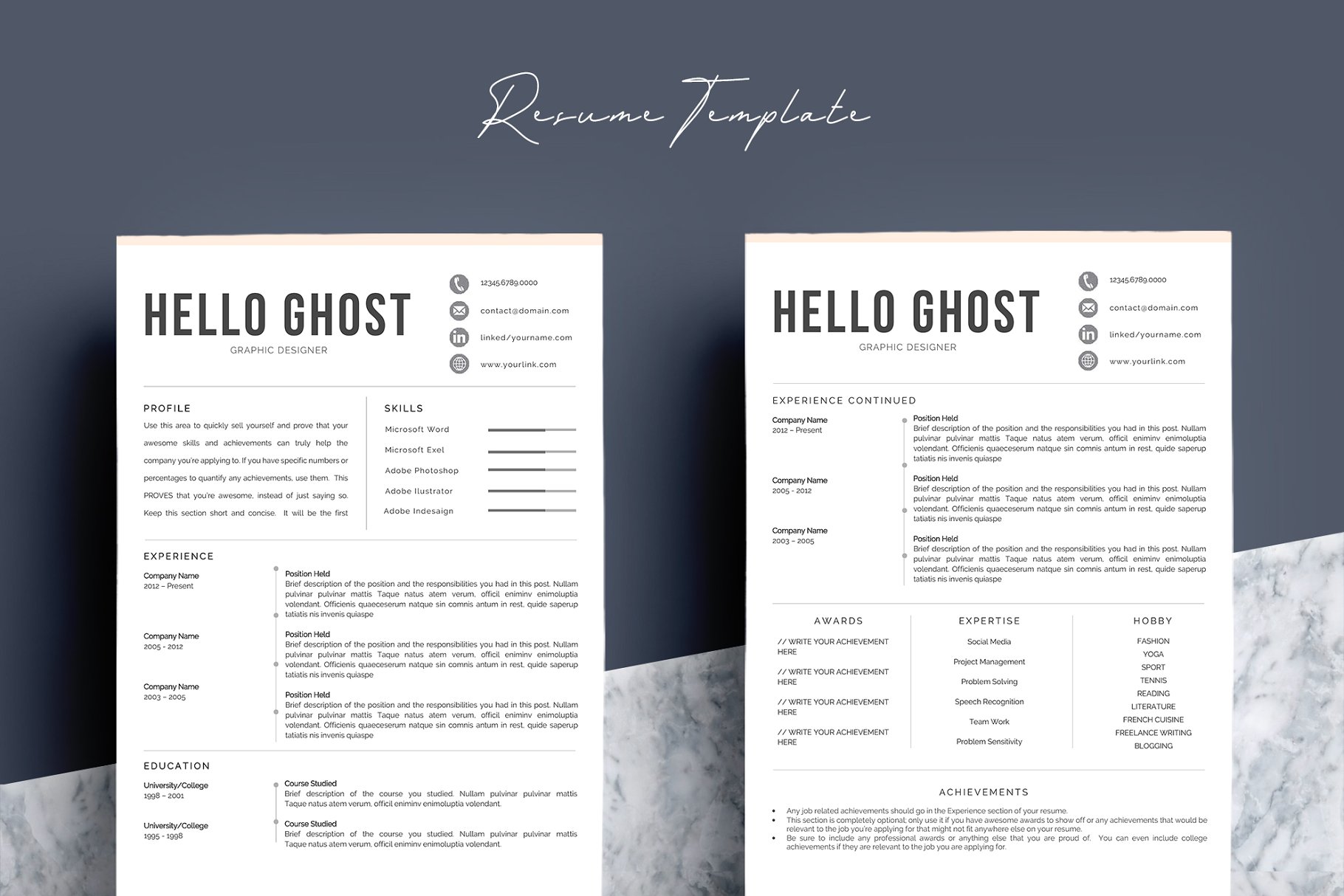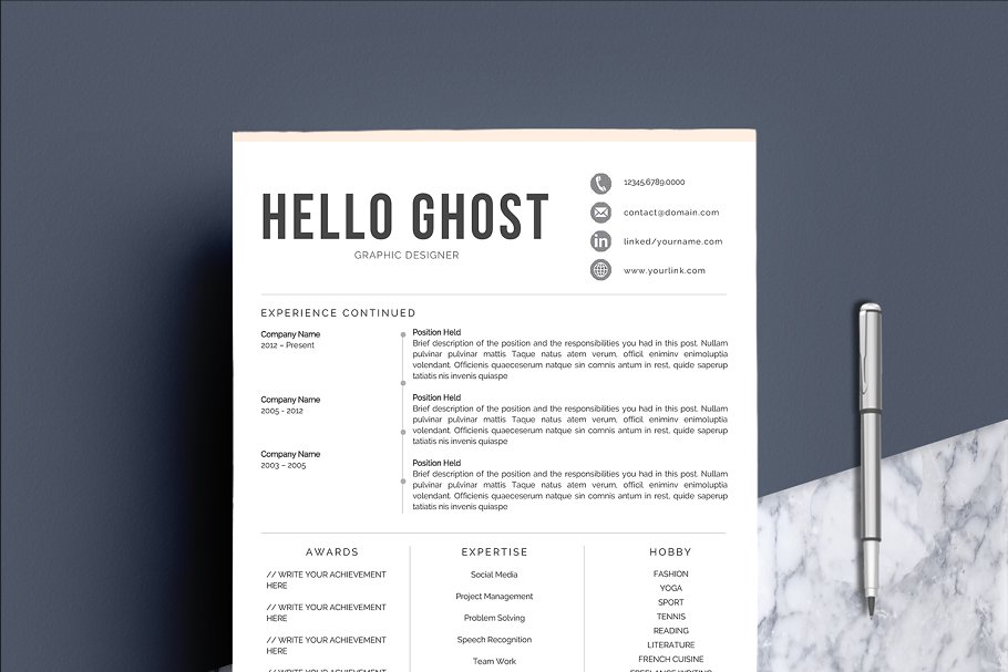 这个专业的简历模板正是你更新旧简历所需要的! 创意和时尚的同时,仍然是专业的,有此简历模板,你一定会脱颖而出滴。该设计是可定制的,所以您可以轻松地修改它,您可以简单地用您自己的信息替换填充文本并添加您自己的照片。