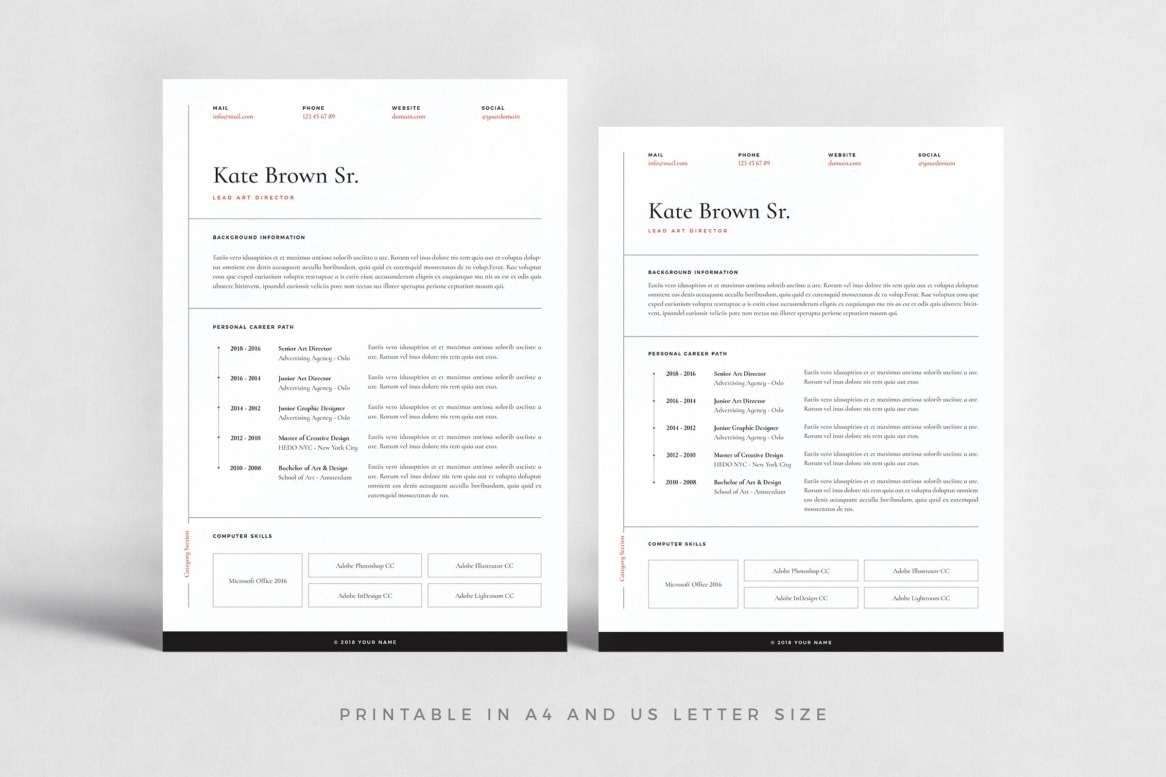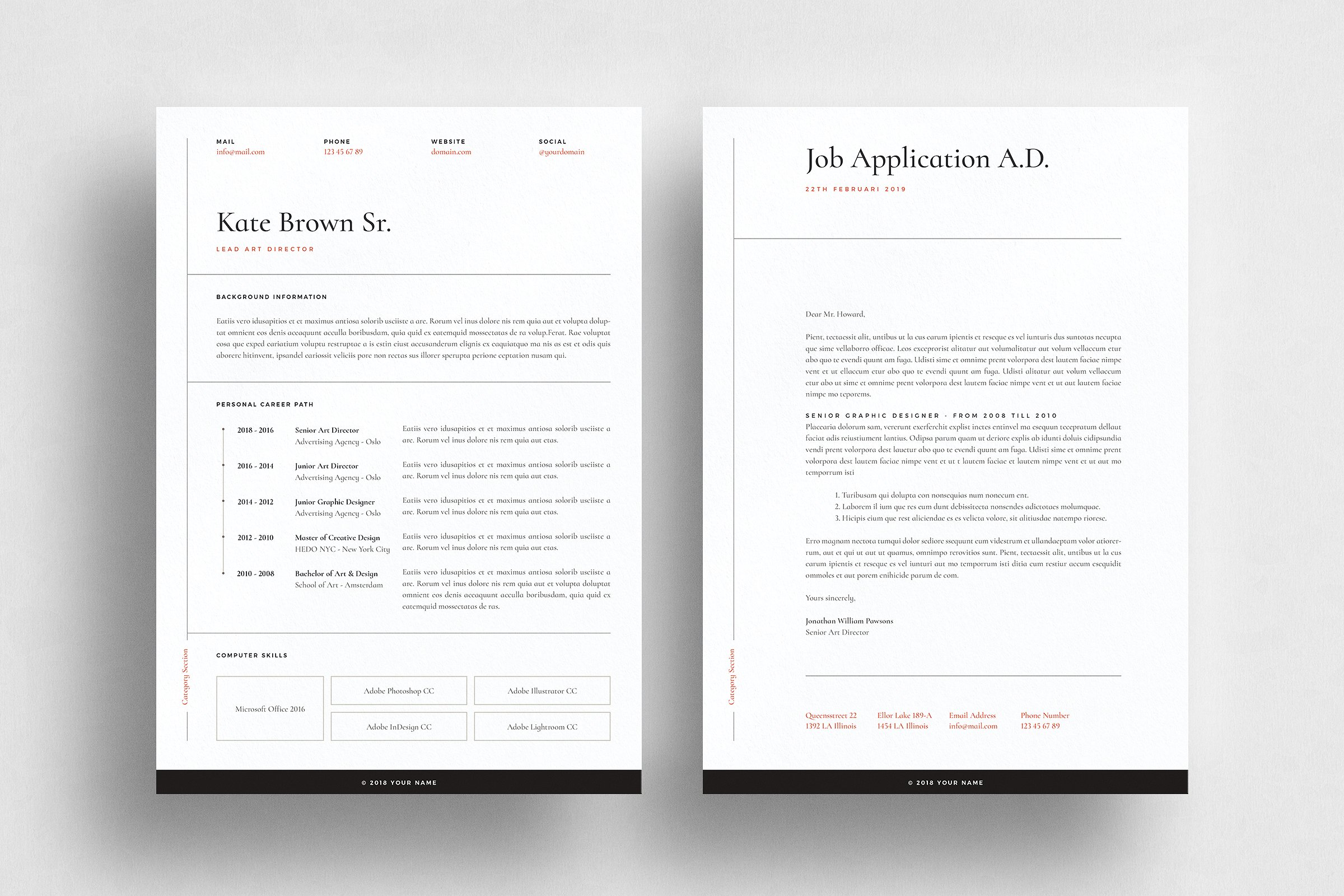 本产品是一个时尚专业的简历和求职信模板。它是一个完全可定制的模板,兼容Adobe Indesign。这个模板有A4和美国的两种尺寸。有了这个模板,你可以用一种时尚和专业的方式展现自己!