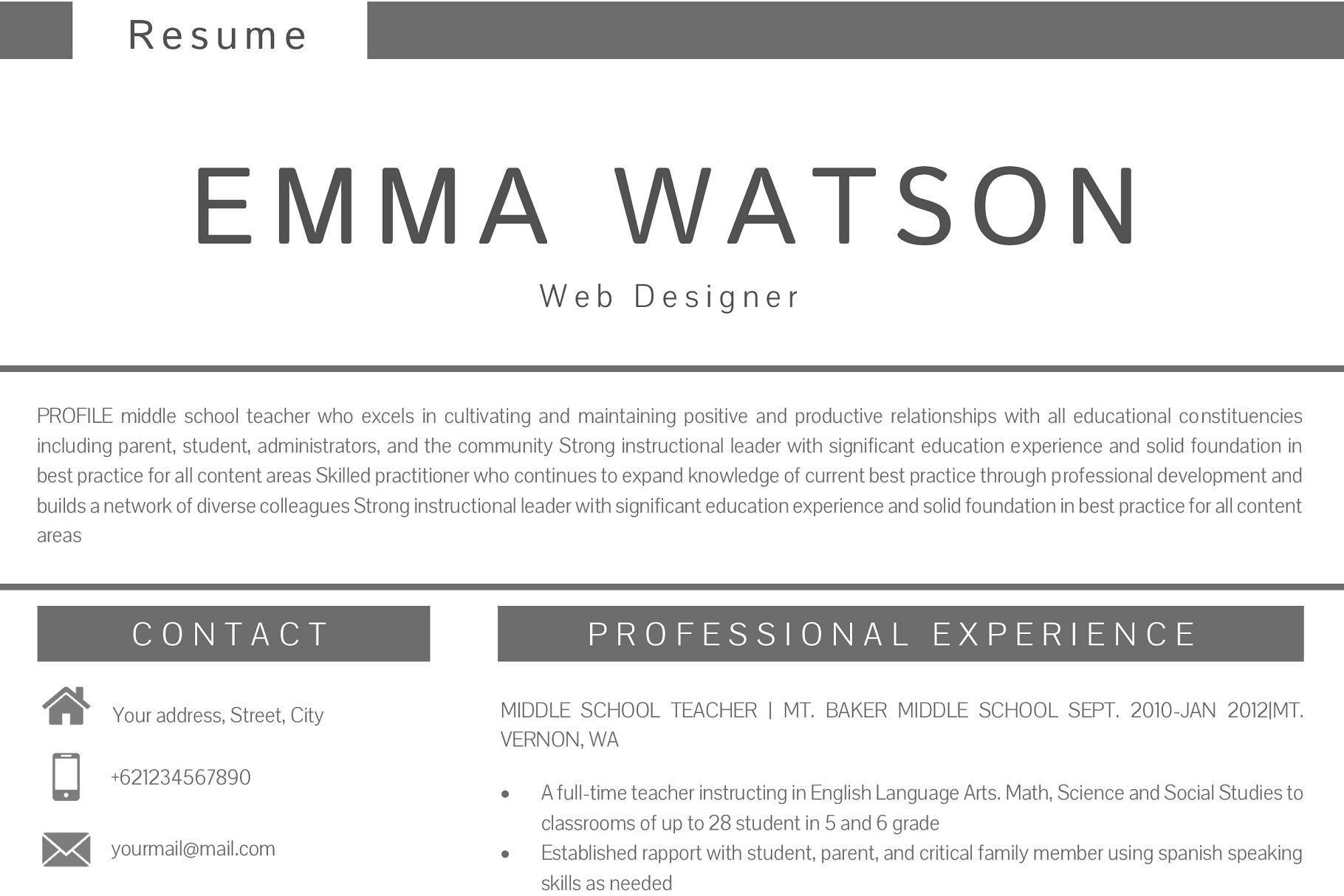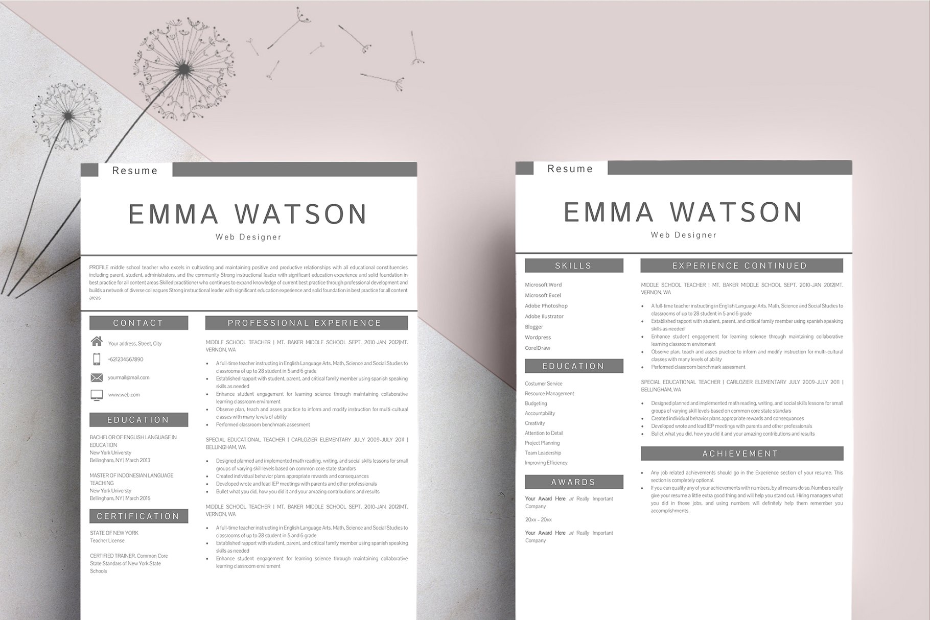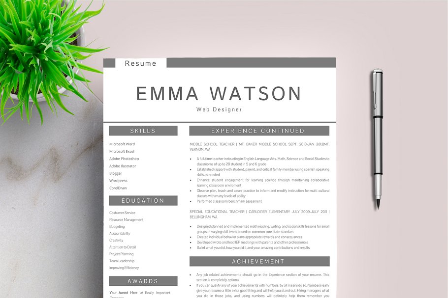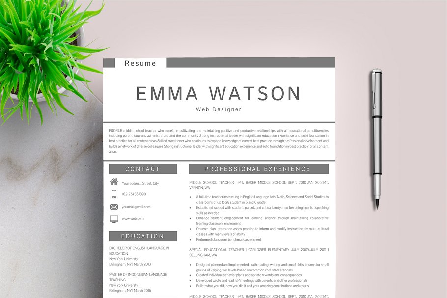 这个专业的简历模板正是你更新旧简历所需要的! 创意和时尚的同时,仍然是专业的,你用此简历模板一定会脱颖而出。该设计是可定制的,所以您可以轻松地修改它,您可以简单地用您自己的信息替换填充文本并添加您自己的照片。我们专业设计的简历模板不仅能帮你节省时间,还能帮你整理招聘人员需要的所有重要信息,让你的简历看起来更专业。