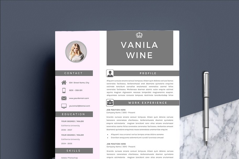 这个专业的简历模板正是你更新旧简历所需要的! 创意和时尚的同时,仍然是专业的,你一定会与此简历模板脱颖而出。该设计是可定制的,所以您可以轻松地修改它,您可以简单地用您自己的信息替换填充文本并添加您自己的照片。