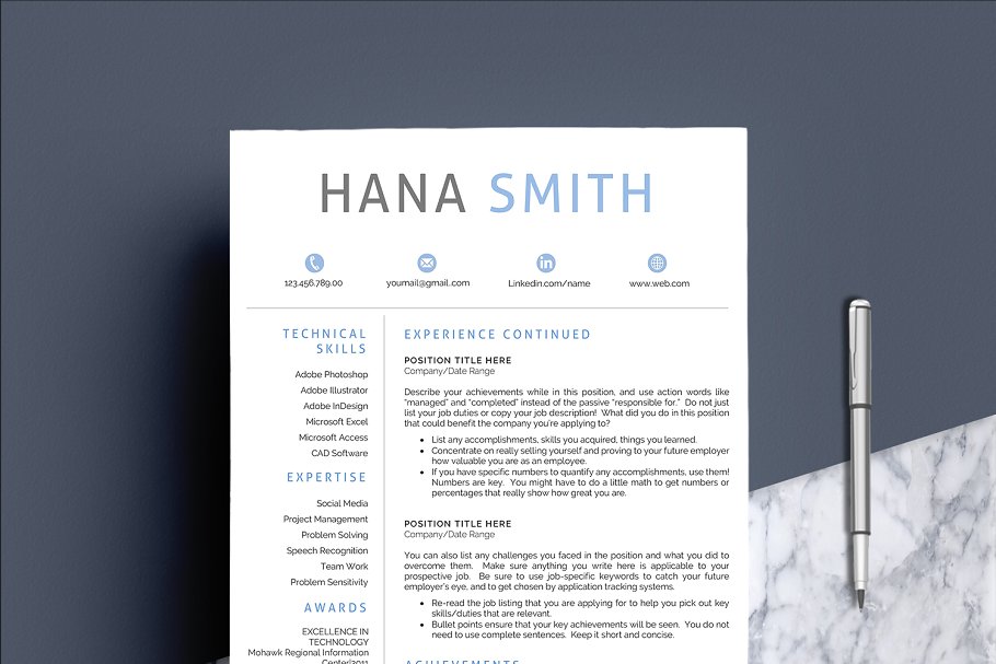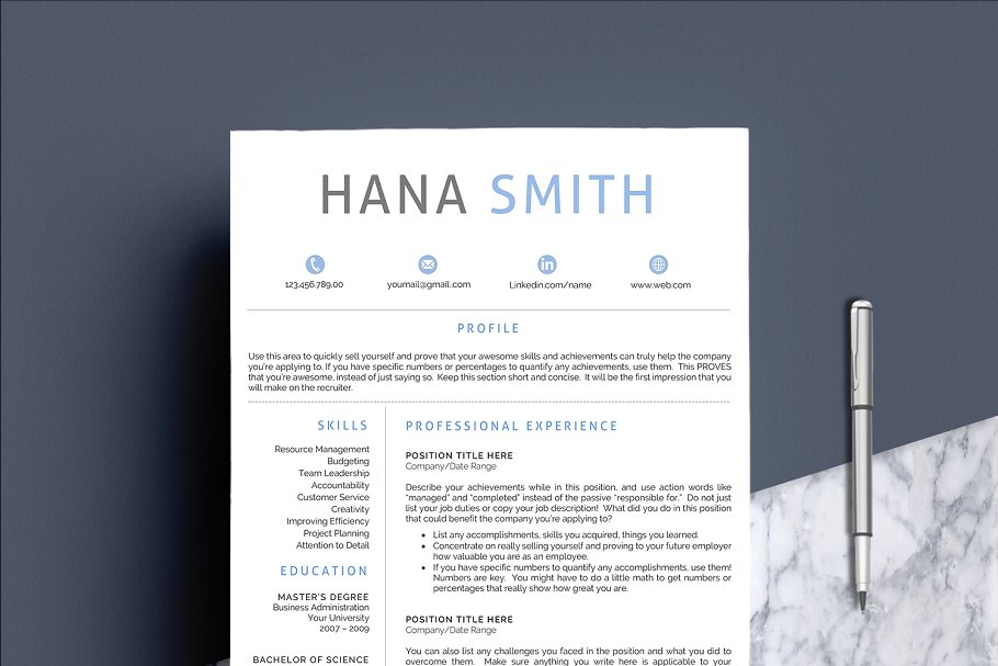 这个专业的简历模板正是你更新旧简历所需要的! 创意和时尚的同时,仍然是专业的,你一定会脱颖而出,与此简历模板。该设计是可定制的,所以您可以轻松地修改它,您可以简单地用您自己的信息替换填充文本并添加您自己的照片。