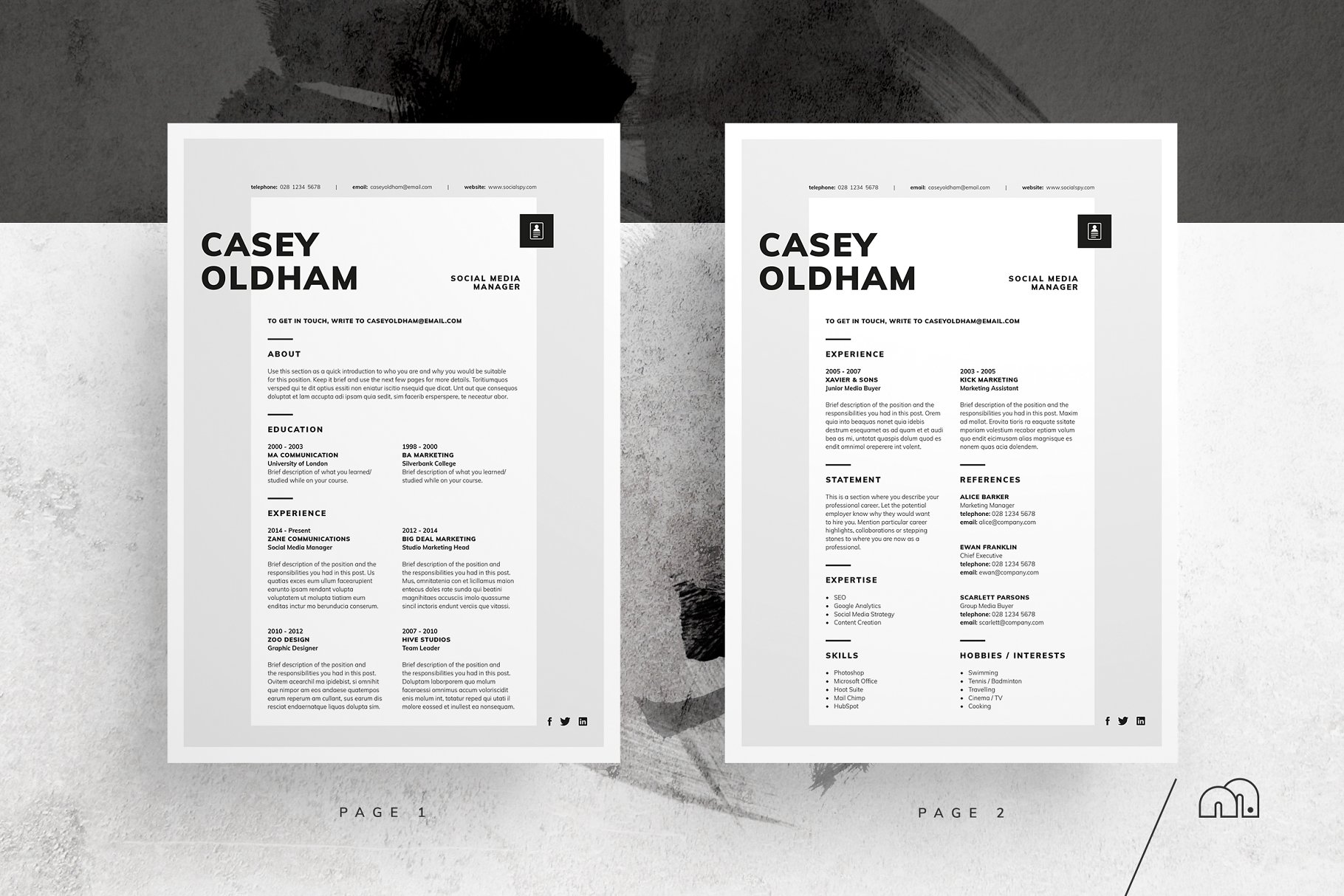 独特的2页设计,加上匹配的封面信(包括样本信)。