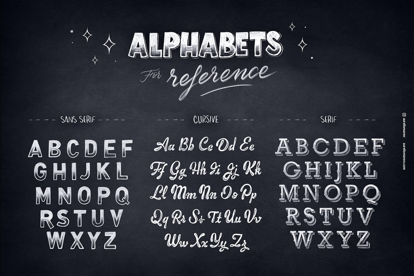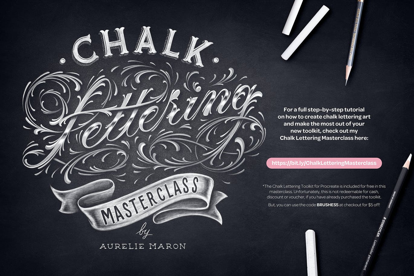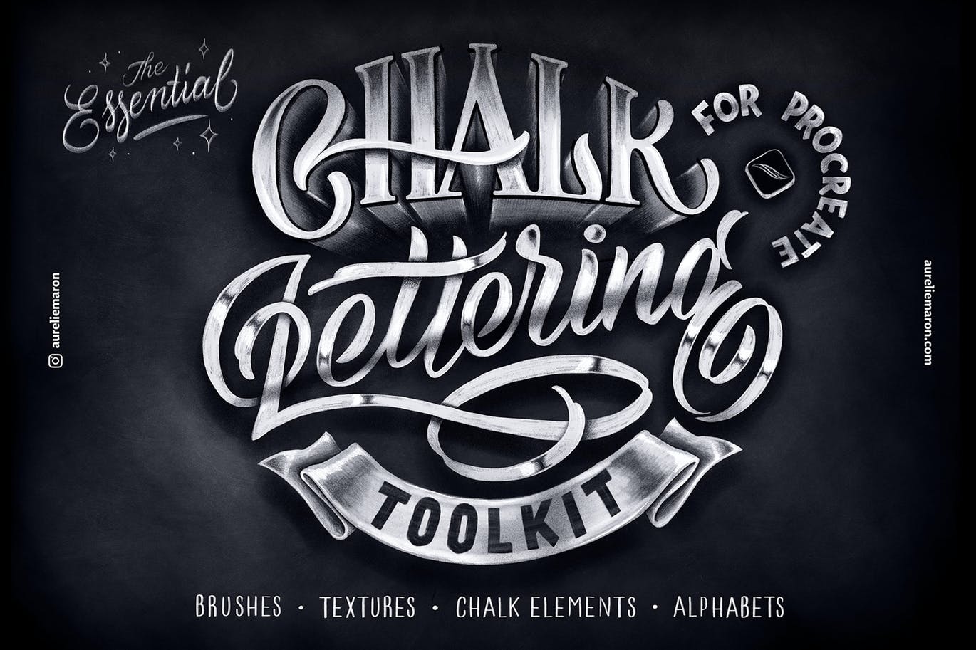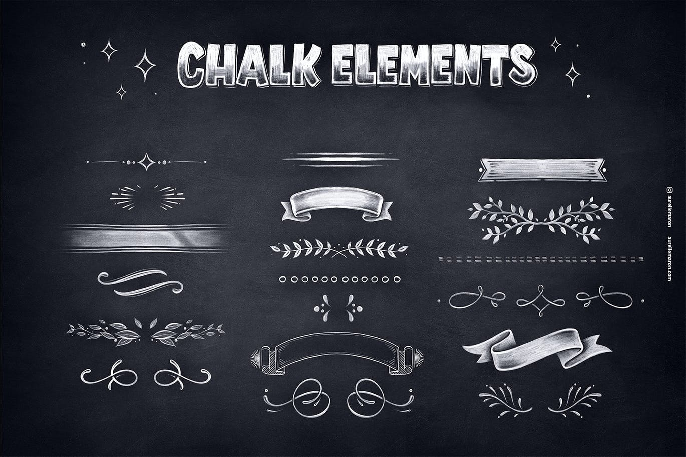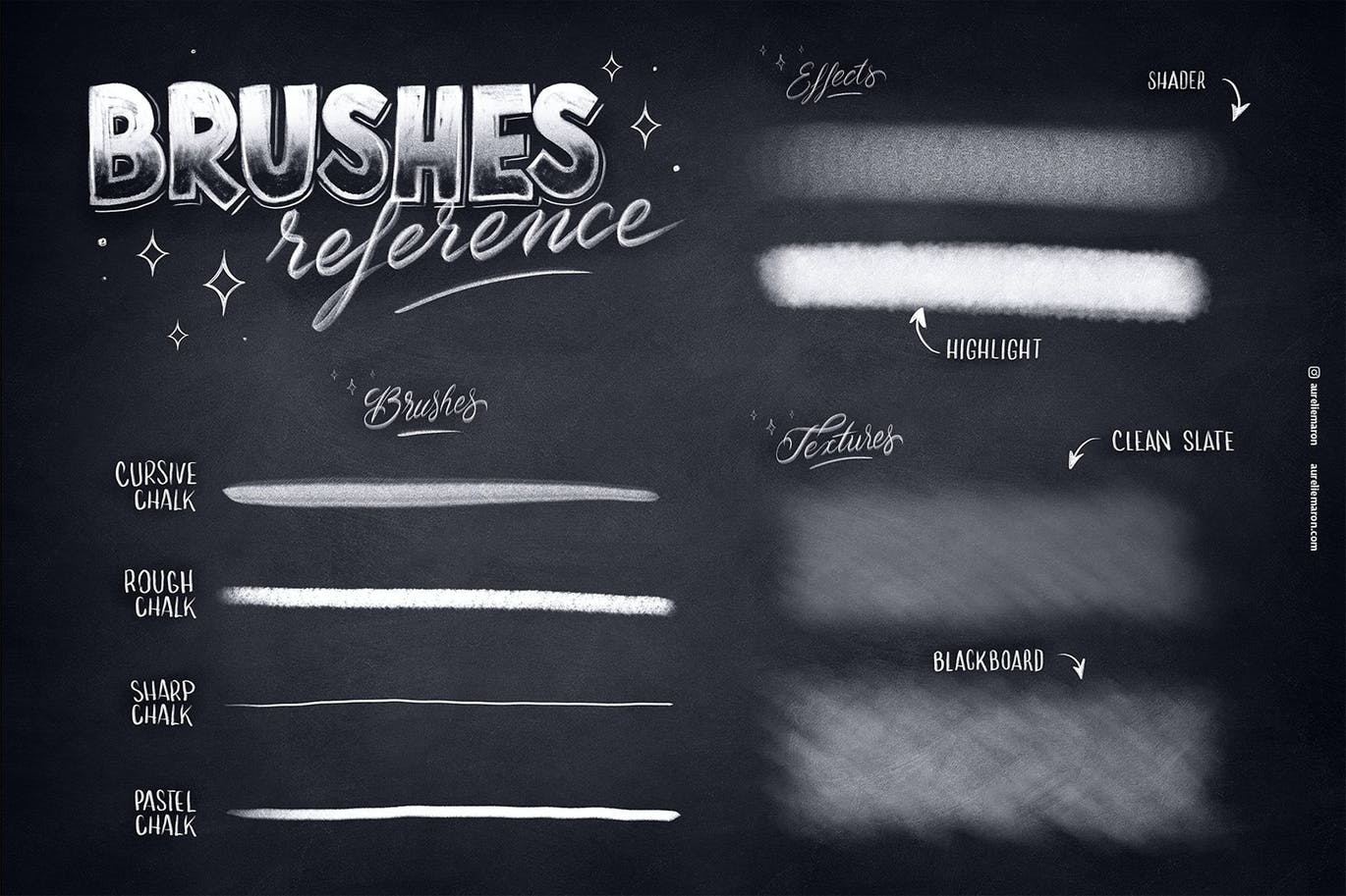 除了这些画笔,您还可以找到现成的黑板纹理、供参考的字母和手绘粉笔元素供您复制和粘贴到您的设计中。