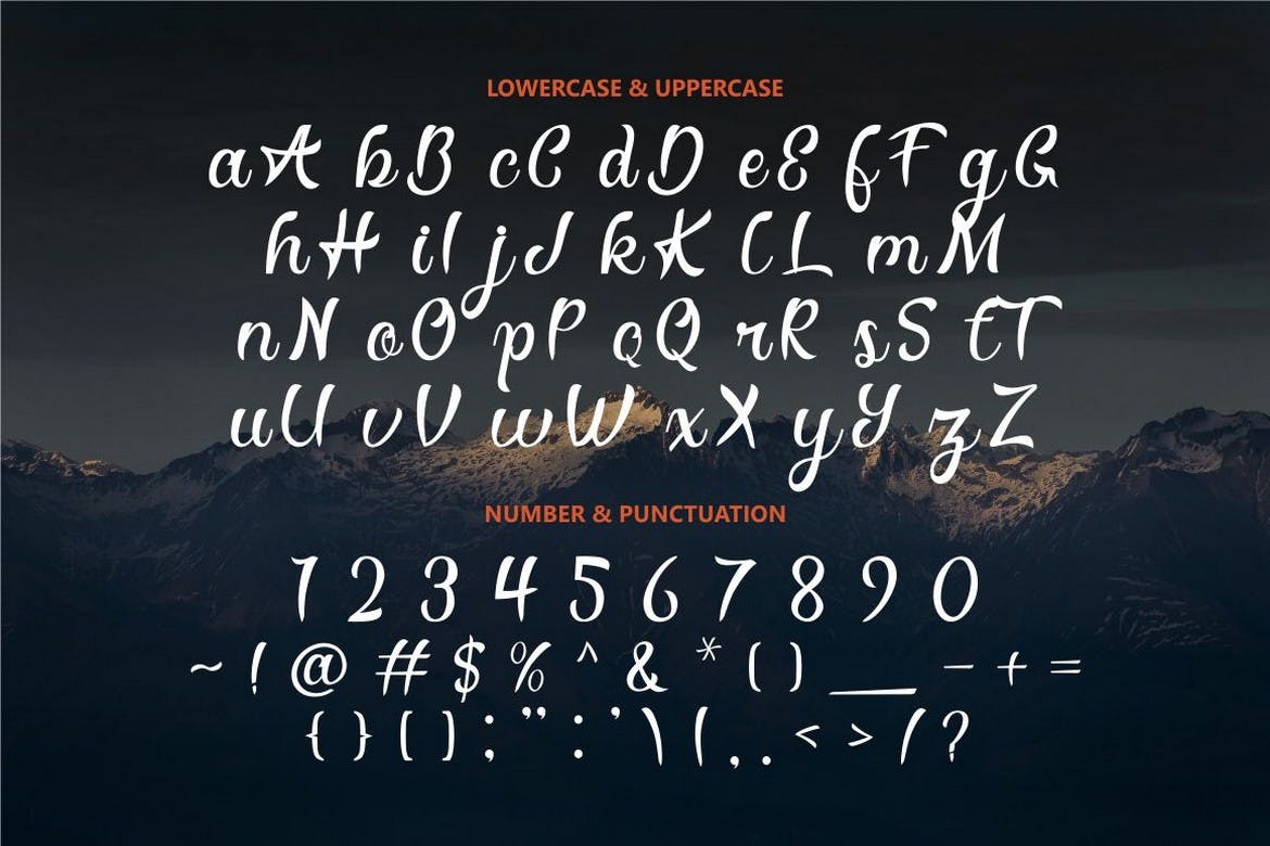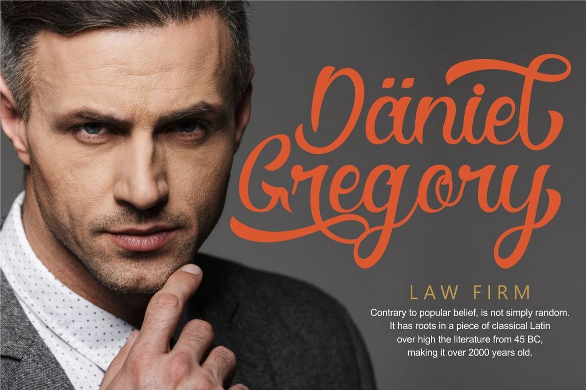 这种字体非常适合专业触摸,使这种字体更加优雅,适合您正在处理的所有类型的项目。但这种字体也适用于徽标、品牌、贺卡、邀请卡、广告、标题、医疗、书名、贴纸、包装、报价、海报、广告牌等。