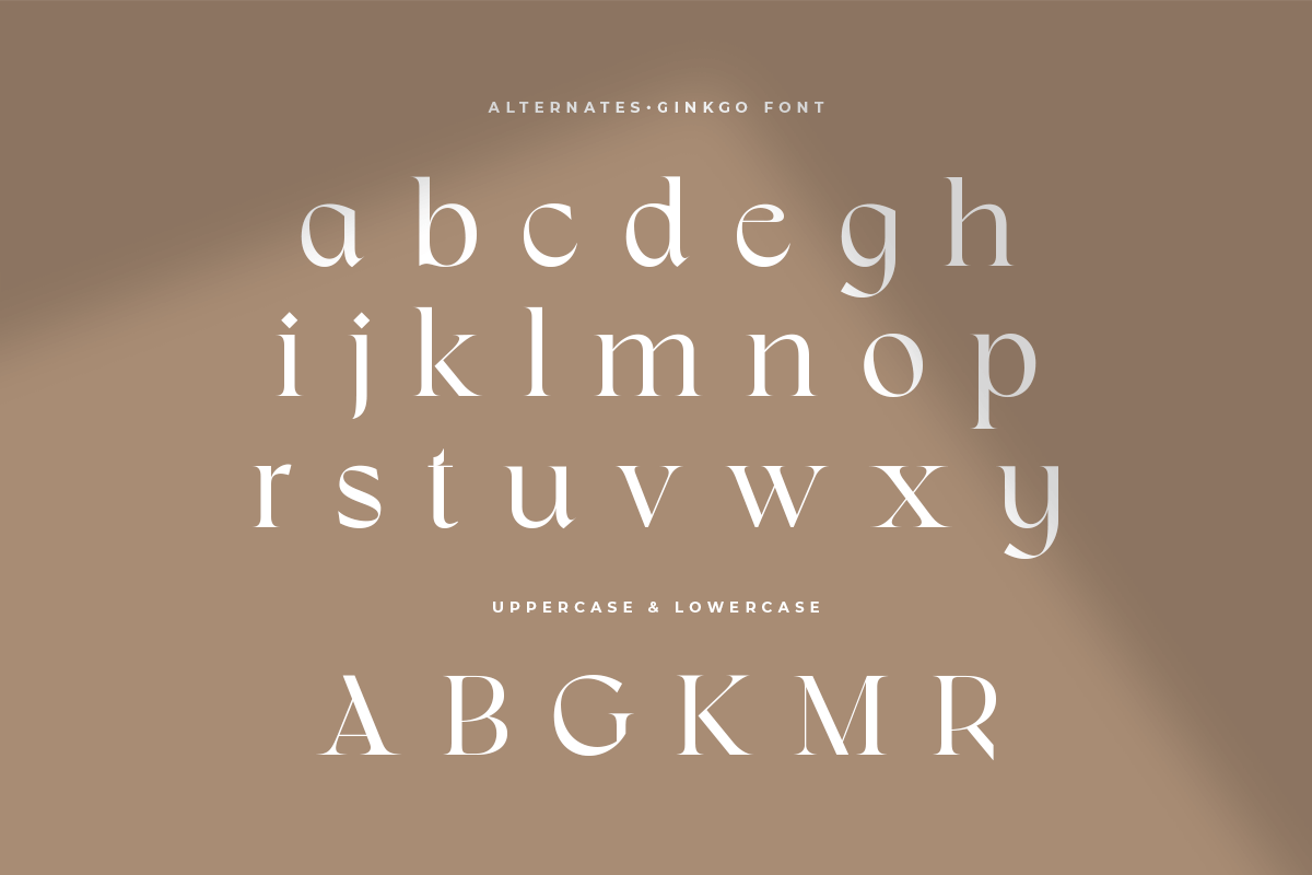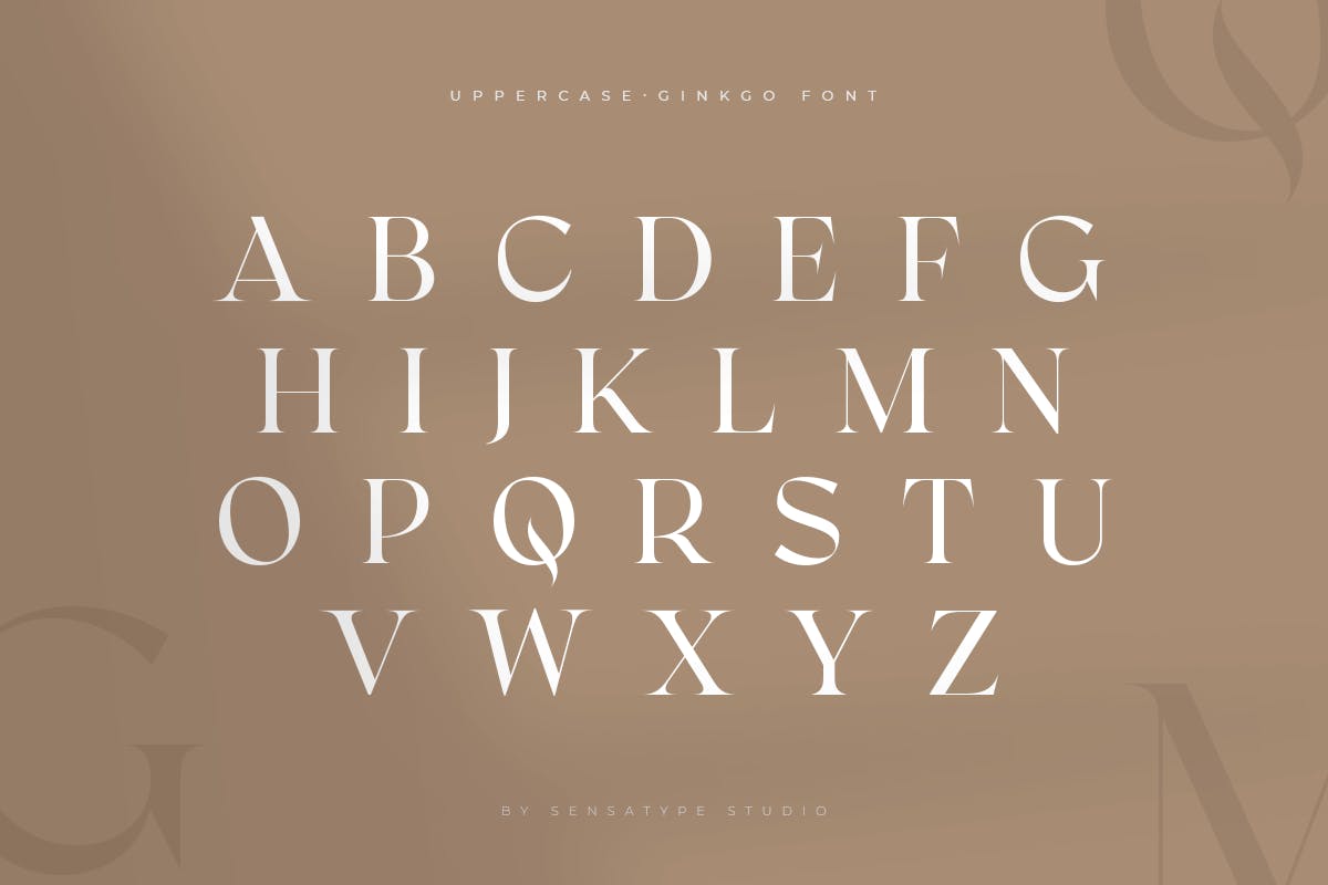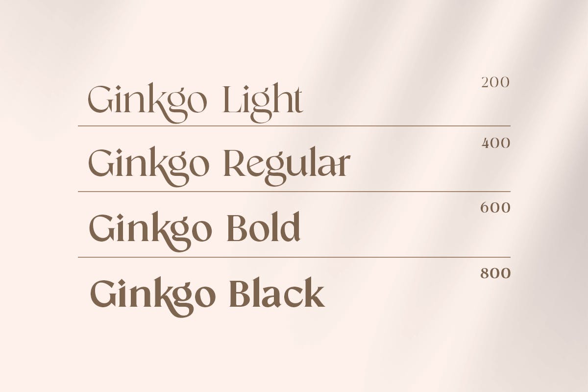 这次老不湿分享的是,Ginkgo – 时尚高端优雅现代优雅衬线字体,4 种权重:Light、Regular、Bold、Black,每个权重 3 个文件:.otf .ttf .woff,获得创意变体的数百个选项(交替、连字、权重的组合)。