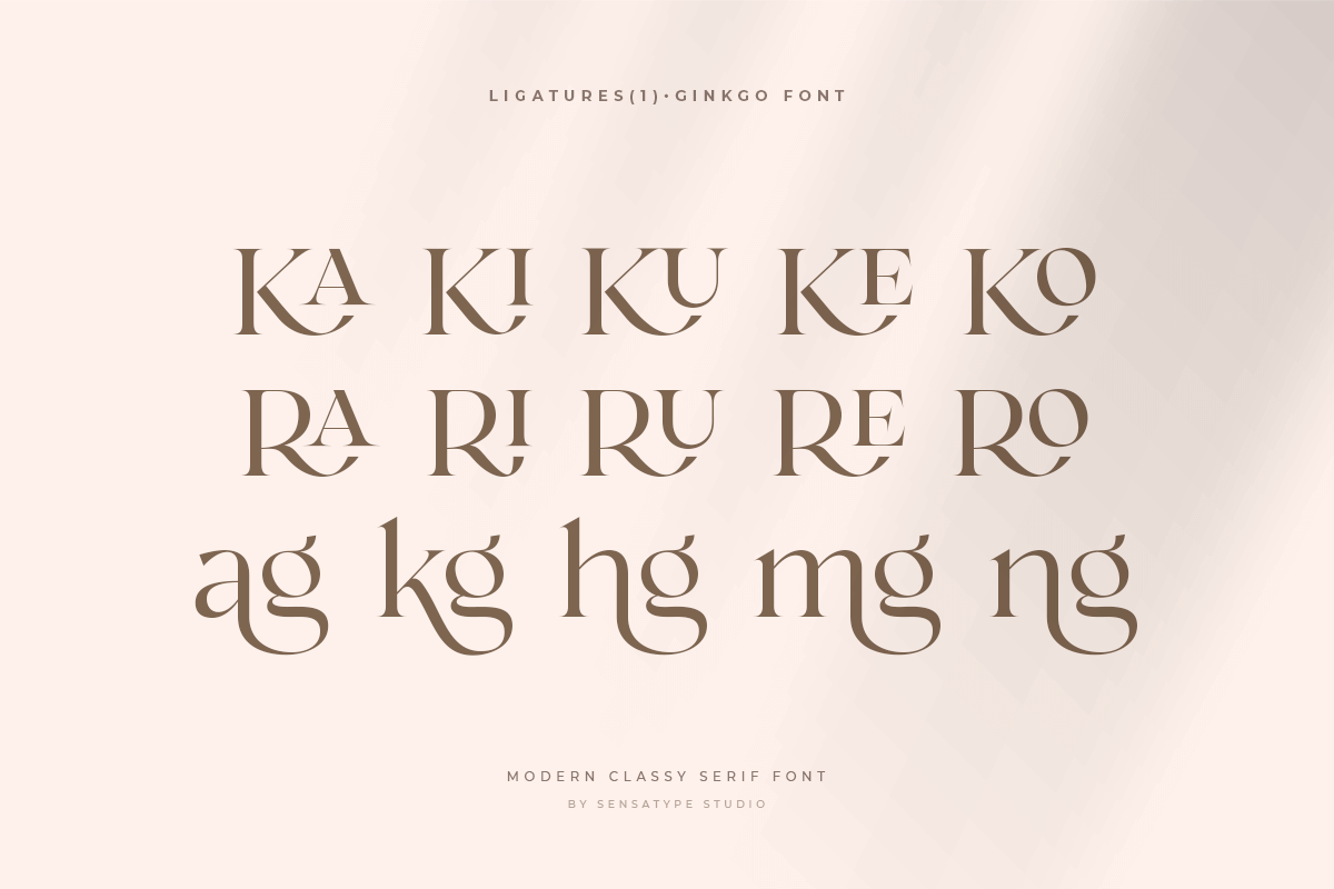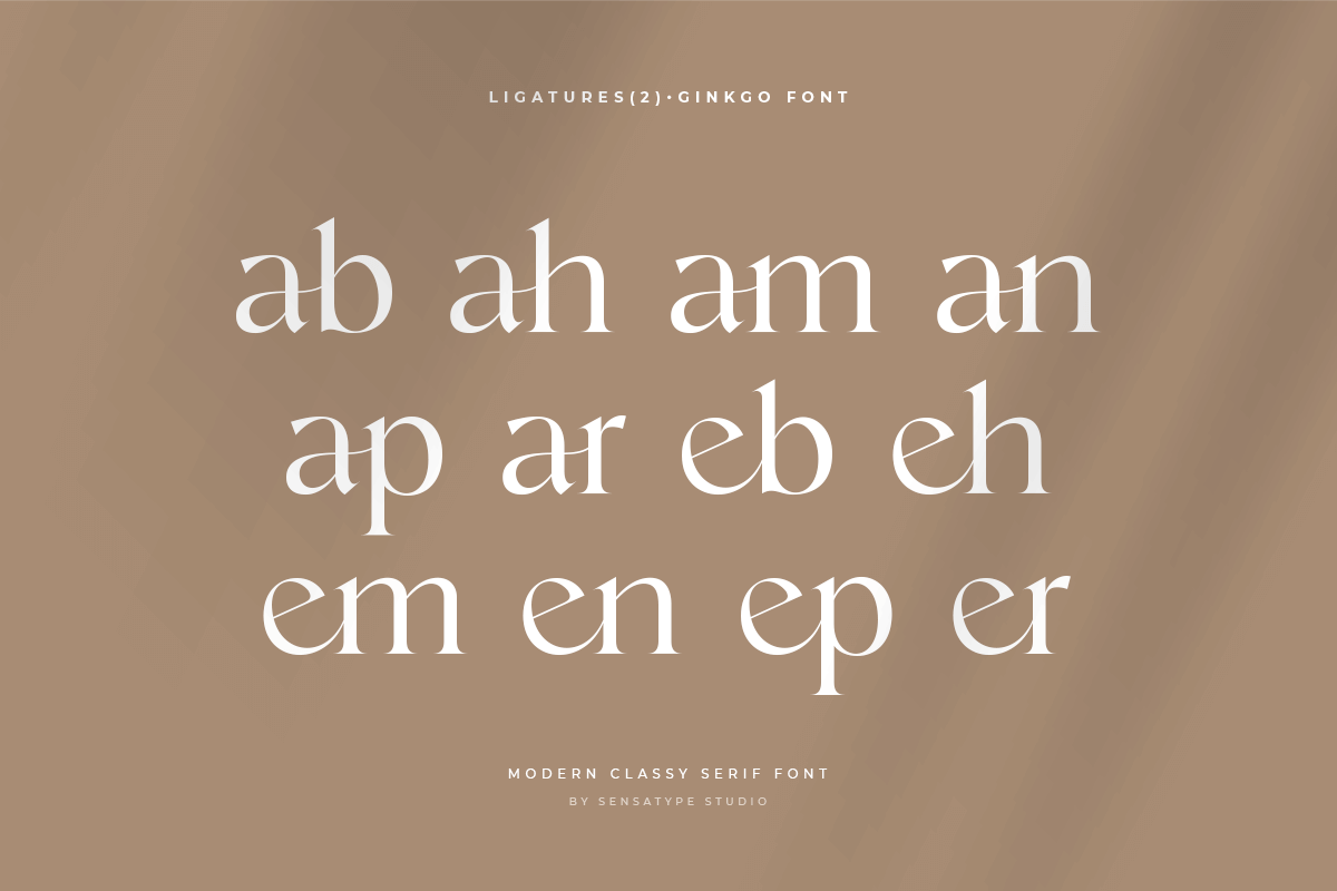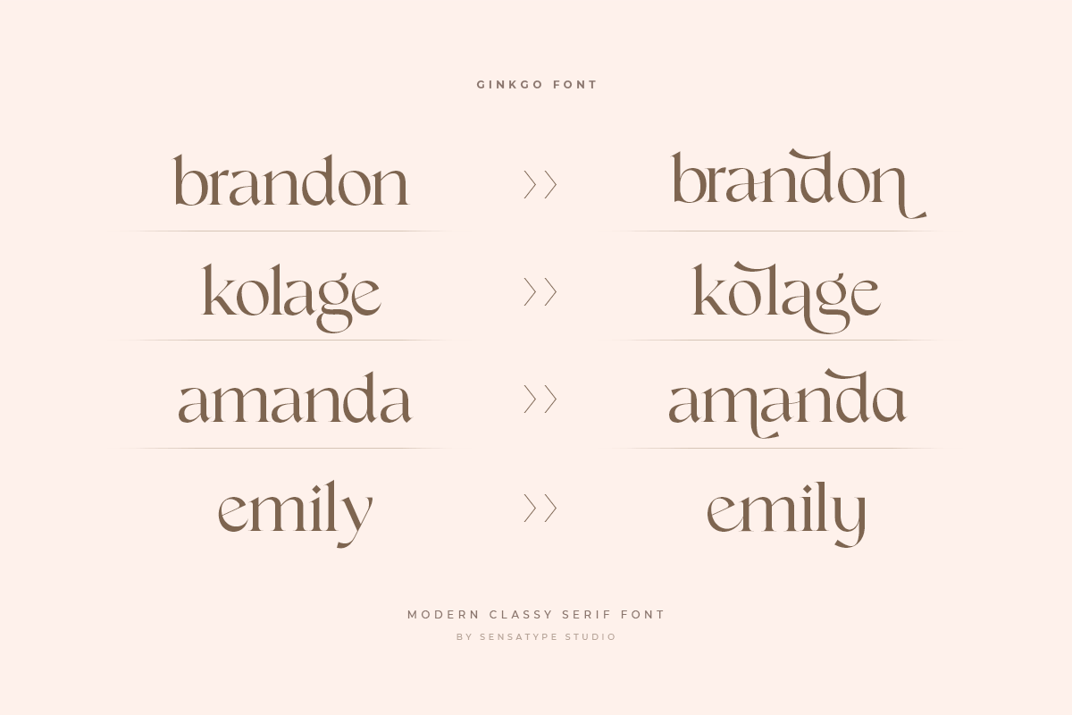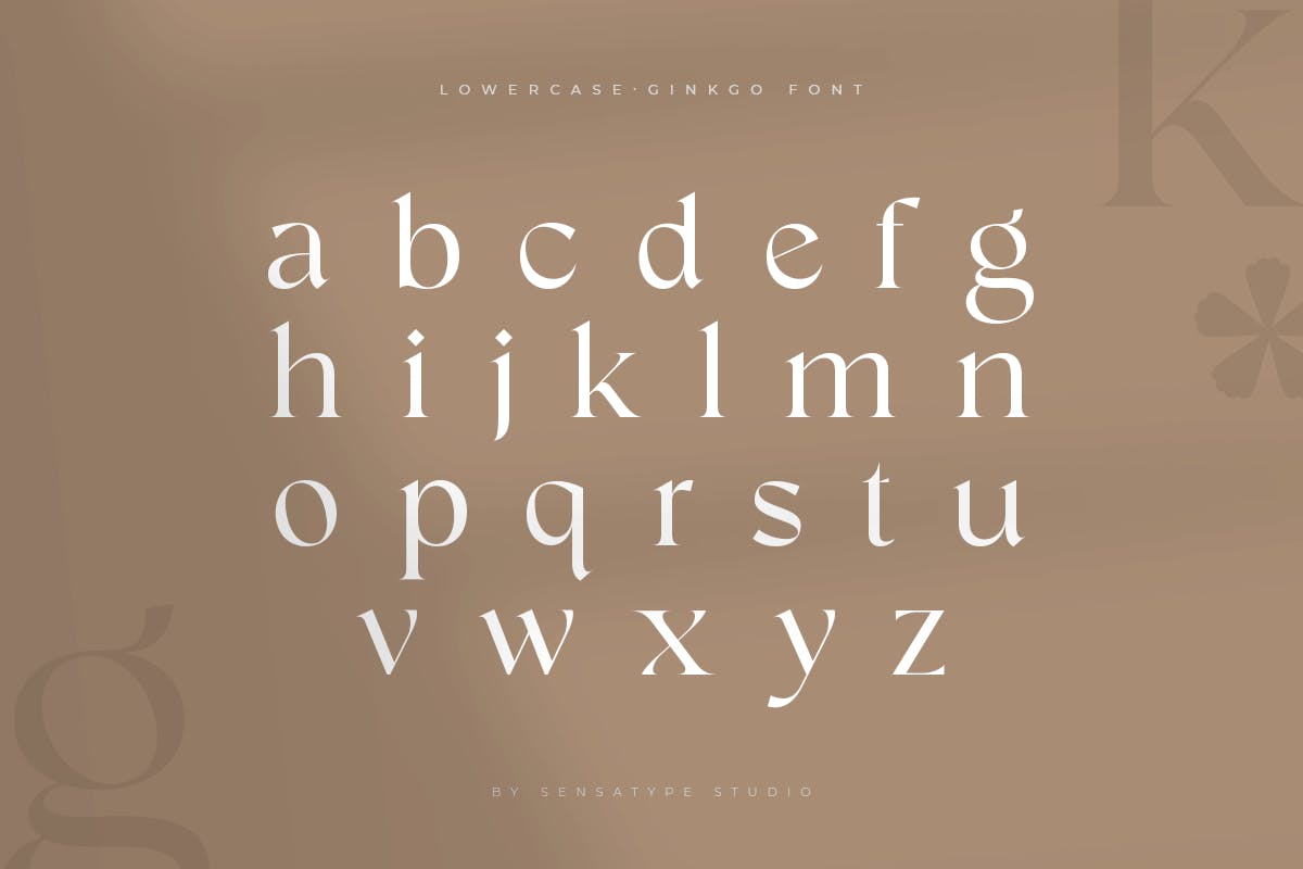 这次老不湿分享的是,Ginkgo – 时尚高端优雅现代优雅衬线字体,4 种权重:Light、Regular、Bold、Black,每个权重 3 个文件:.otf .ttf .woff,获得创意变体的数百个选项(交替、连字、权重的组合)。