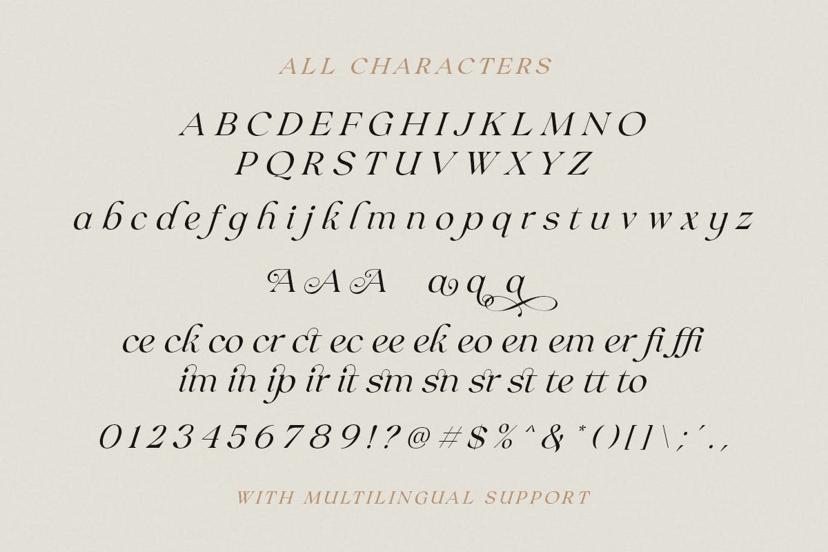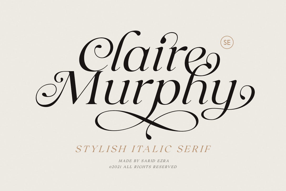 这次老不湿分享的是,时尚高端专业的高品质优雅斜体衬线英文字体设计,Claire Murphy是一款经典时尚的斜体衬线,带有一堆替代品,可以让您的演示文稿或徽标更加迷人和优雅。您可以婚礼请柬、徽标或 Instagram 帖子。