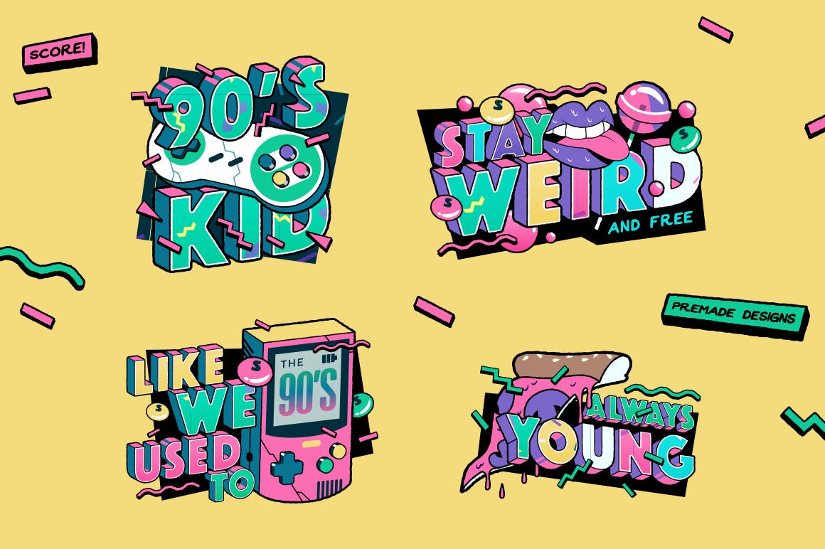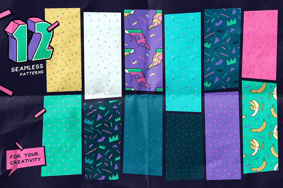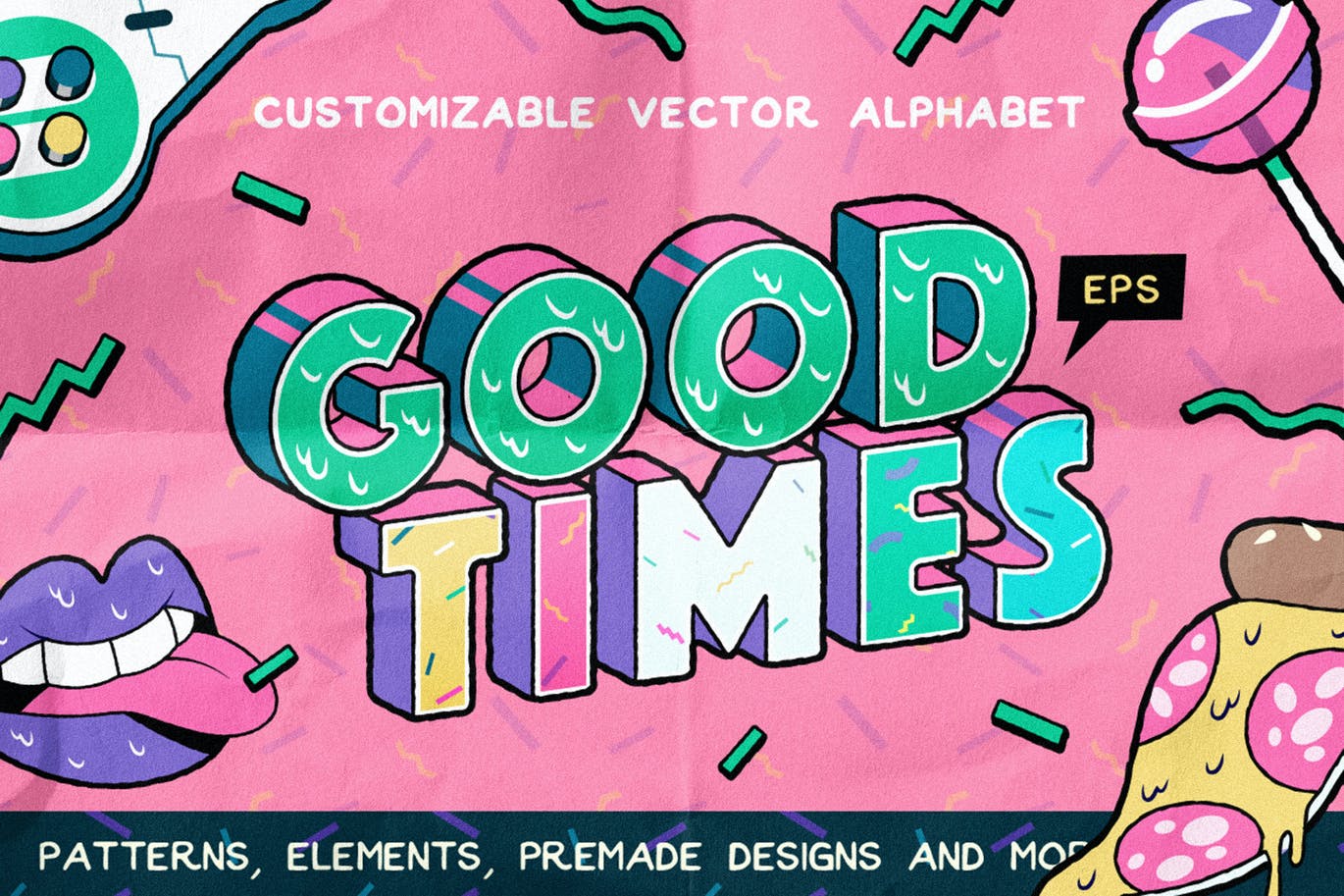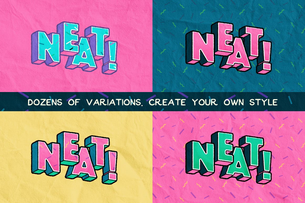 这次老不湿分享的是,高端时尚清新90年代复古可爱风格3D立体字字体设计背景底纹纹理集合,一个图形包,其中包括带有数字的完全可定制的矢量字母,rad 90的灵感无缝图案,装饰元素,插图对象和酷炫的T恤设计。整个包装非常易于使用;每个字母或数字都经过分组并准备好进行颜色更改。这个包对于创建怀旧的活动海报,时髦的传单,有趣的邀请以及许多其他很棒的东西可能非常有用。